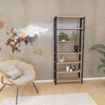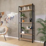 Regały loft do salonu to ponadczasowe meble o uniwersalnej stalowej konstrukcji (powleczonej ochronną farbą w intensywnym czarnym kolorze) i drewnianym lub przypominającym drewno wykończeniu, które idealnie komponują się z różnymi dekoracyjnymi przedmiotami, np. ozdobnymi świecami, wazonami czy efektownymi roślinami doniczkowymi.