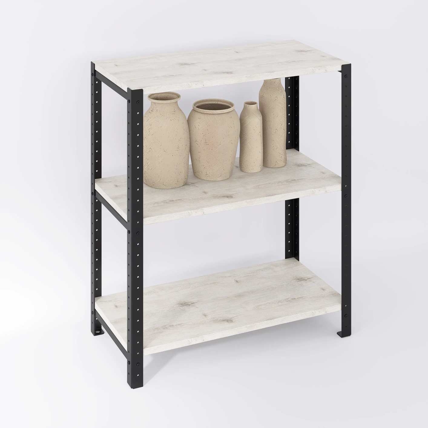 Regał loft do salonu posiada minimalistyczną konstrukcję ze stali oraz solidne półki wykonane z drewna lub laminowanych płyt wiórowych. Uniwersalny design regału sprawia, że pasuje on zarówno do przestronnych, industrialnych przestrzeni, jak i mniejszych pomieszczeń. Regał sprawdzi się nie tylko w aranżacjach typowo loftowych, ale także we wnętrzach urządzonych w innych stylach, np. skandynawskim, vintage czy klasycznym.