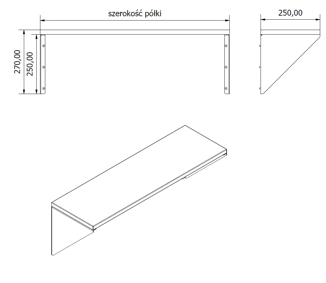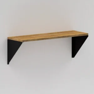 Półka ścienna dębowa z czarnym stalowym uchwytem w kształcie trójkąta