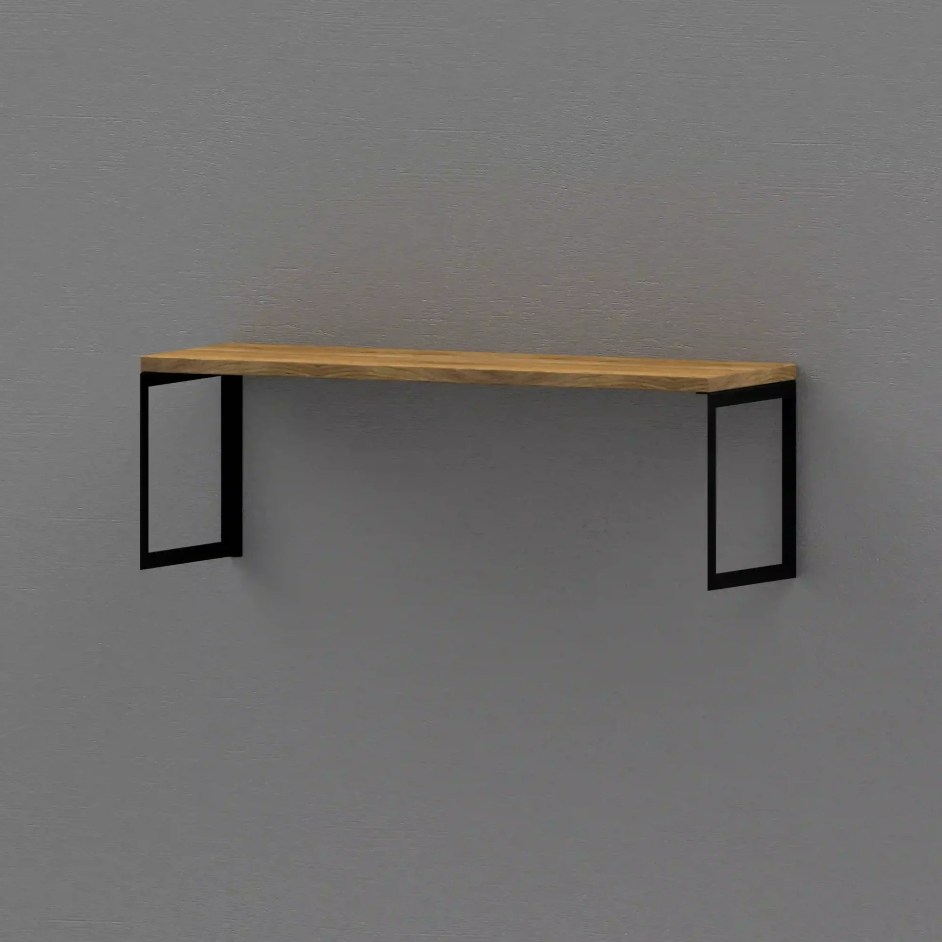 Półka ścienna dębowa z czarnym stalowym wspornikiem