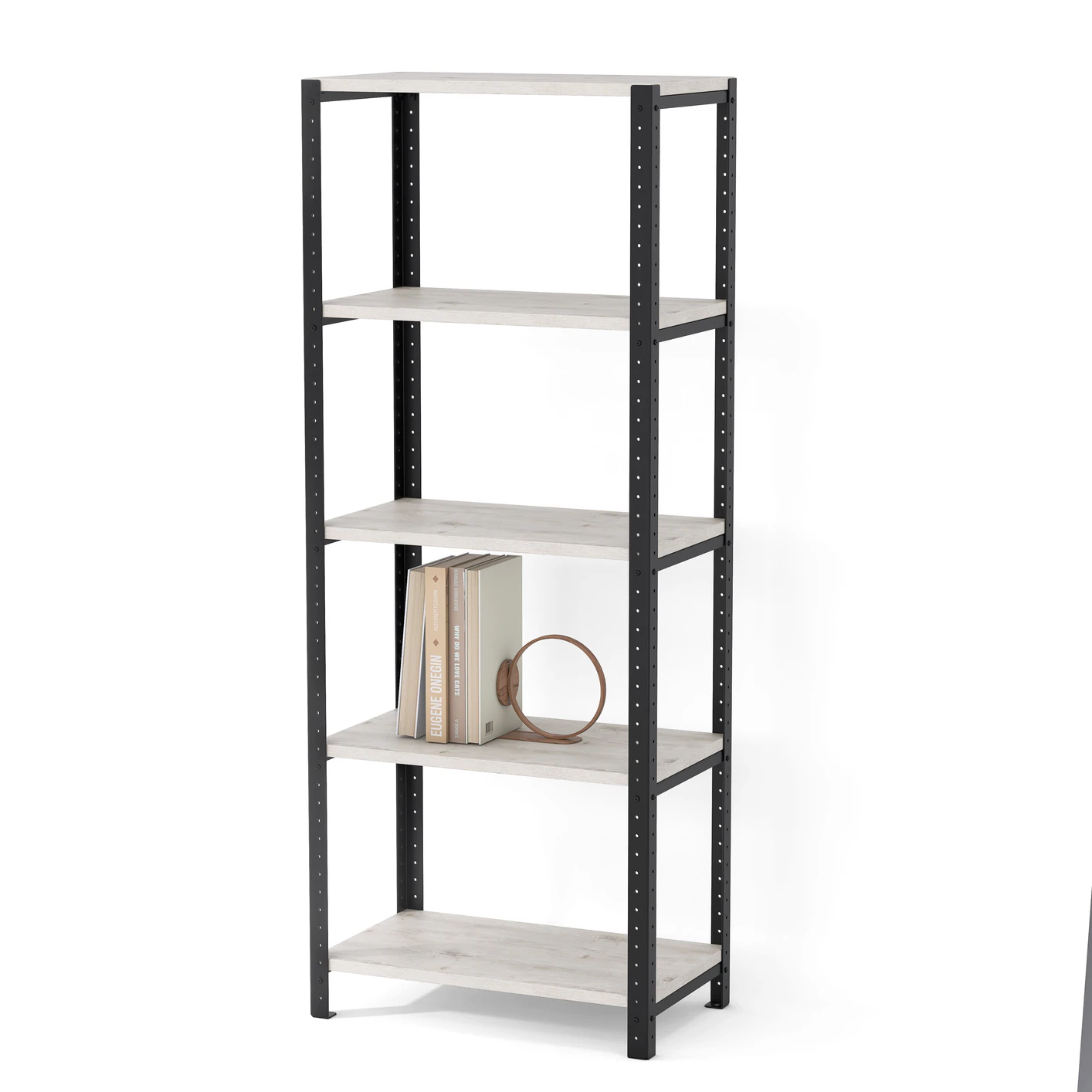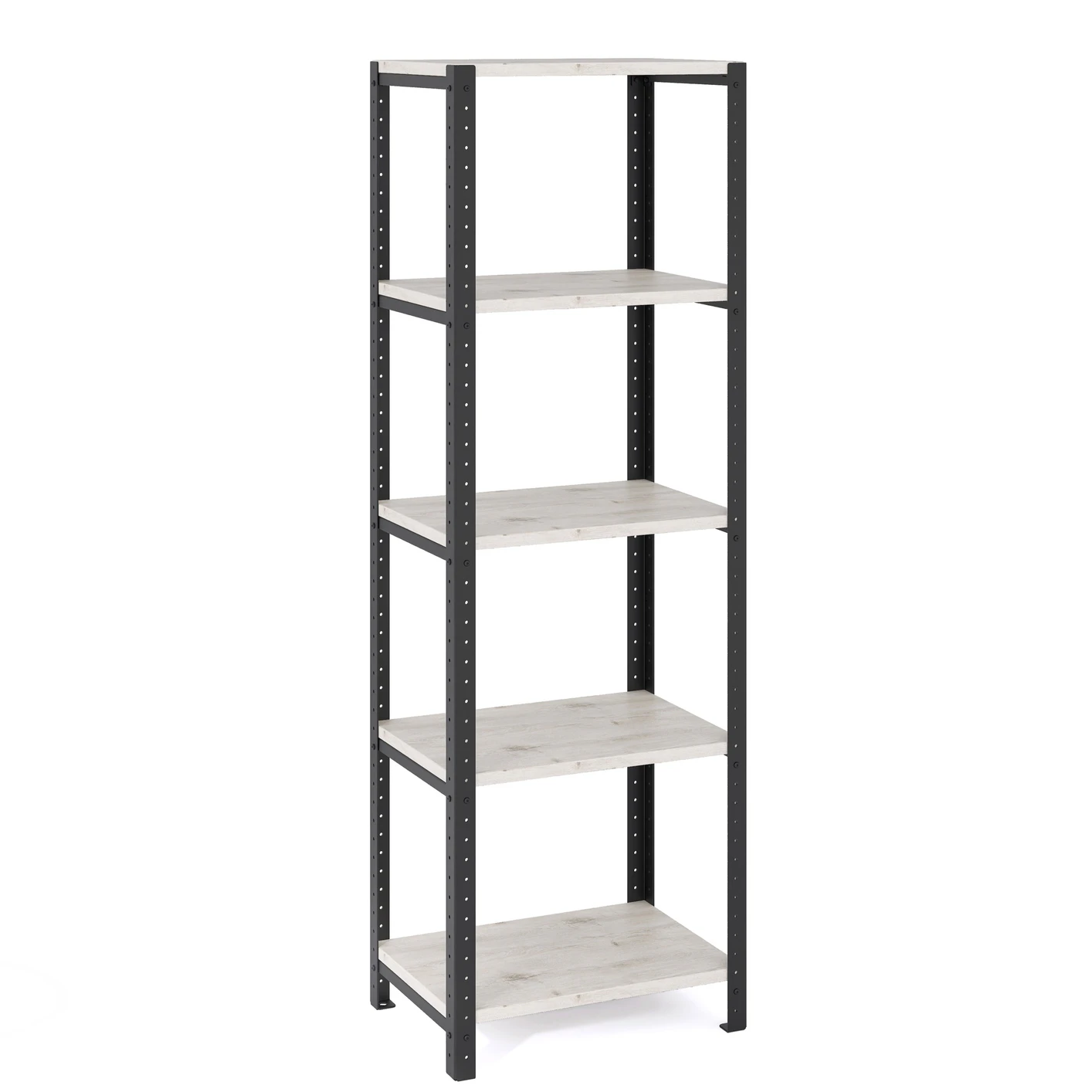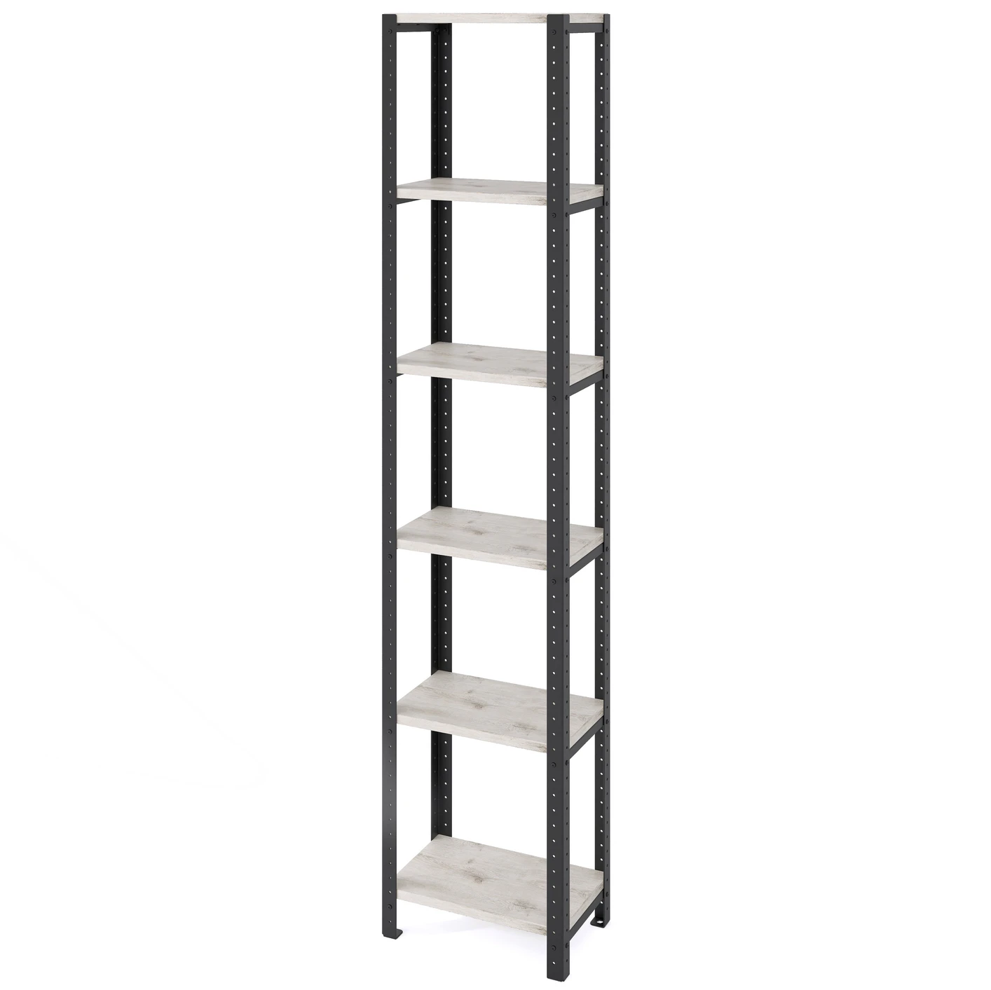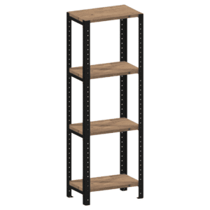 Wąski regał loft 40x25x118 cm z laminowanymi półkami ma wiele zastosowań. Może być używany w różnych pomieszczeniach – zaczynając od salonu, a kończąc na łazience. Da się go też powiesić na ścianie lub połączyć z innymi regałami dzięki systemowej konstrukcji.