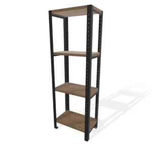 Wąski regał loft 40x25x118 cm z laminowanymi półkami dopasujesz do różnych typów pomieszczeń, dzięki kompaktowym wymiarom i klasycznej konstrukcji. Sprawdzi się jako elegancka konsola, szafka do przedpokoju czy nieduży regał na dekoracyjne rośliny. Laminowane półki imitujące drewno można zamówić w kolorze, który dobierzesz do konkretnego wnętrza oraz innych mebli.