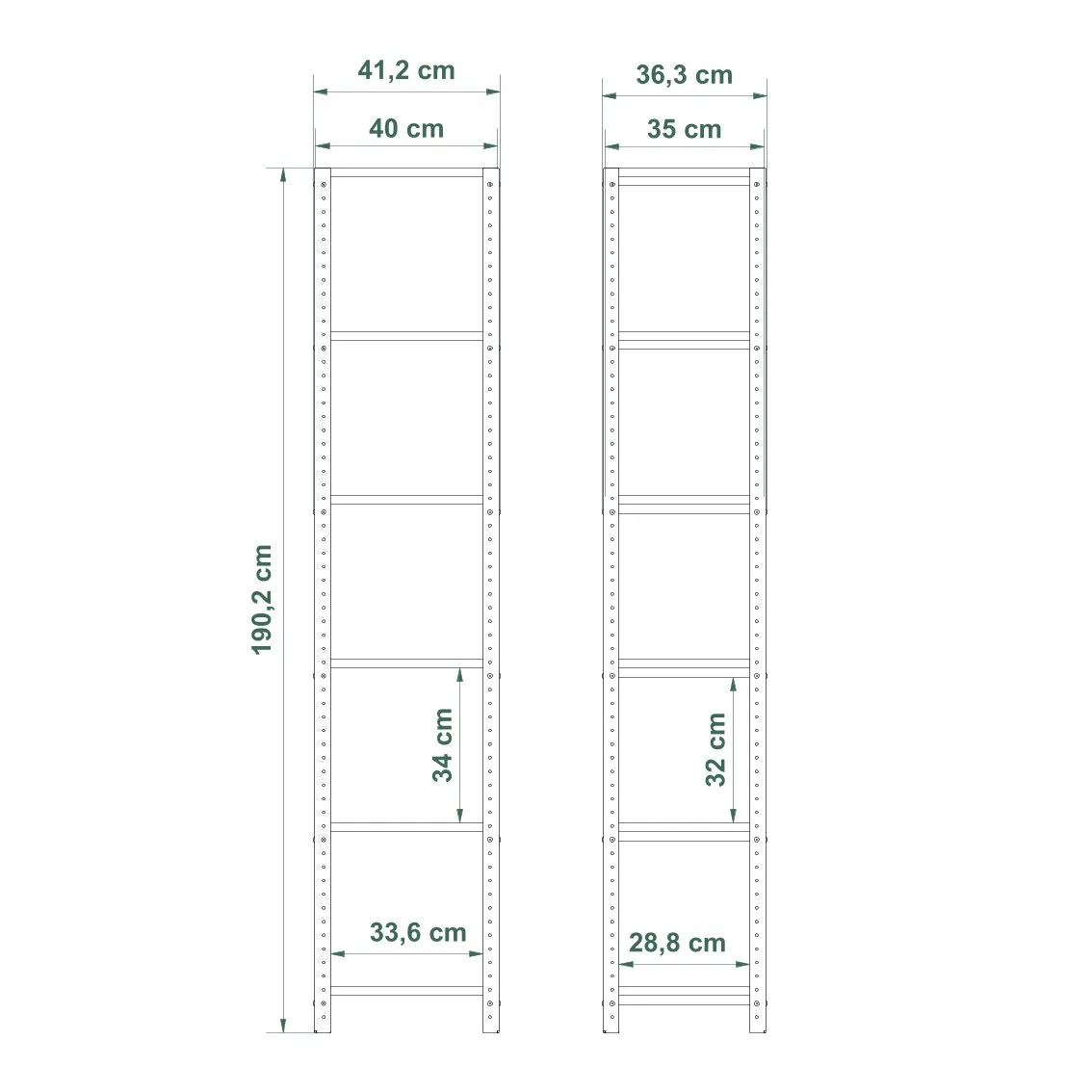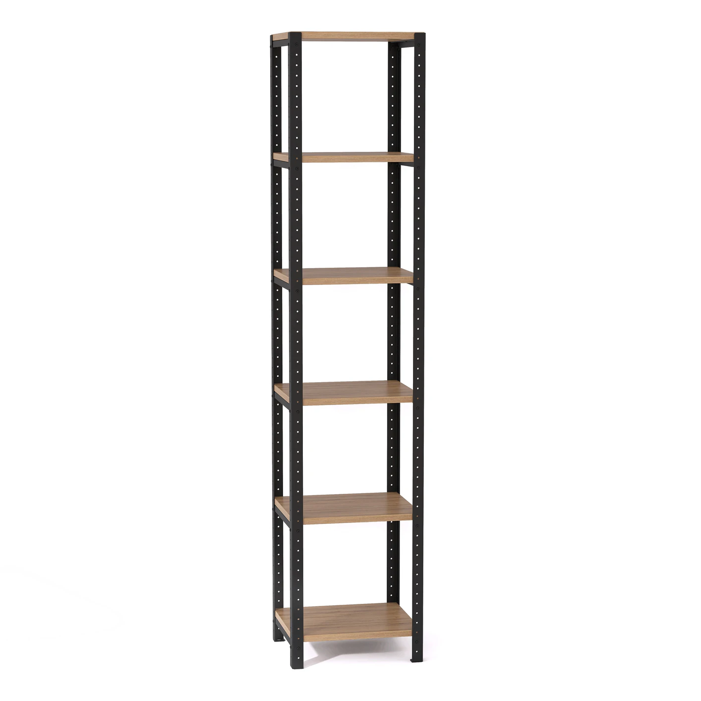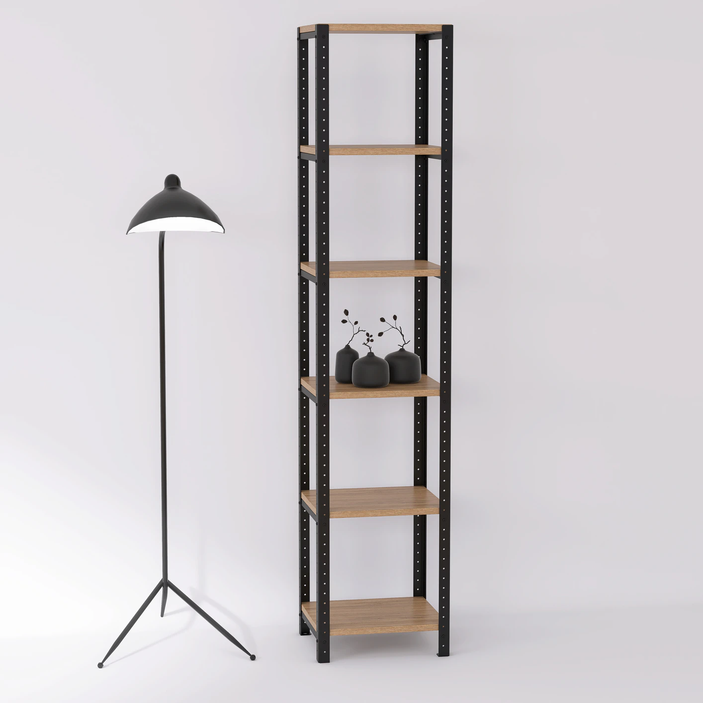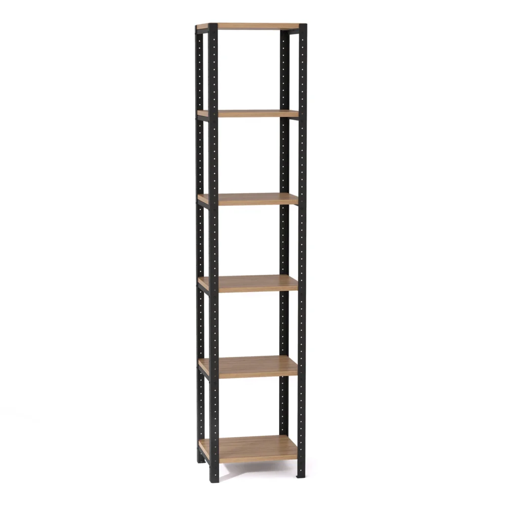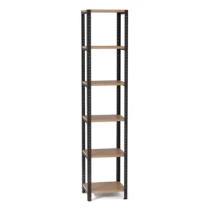Wąski regał loft 40x35x190 cm z laminowanymi półkami i klasyczną stalową konstrukcją to mebel o wielu zastosowaniach. Ten wysoki i dość głęboki regał idealnie nadaje się do zagospodarowania pomieszczeń o małym metrażu oraz zabudowy wąskiej wnęki.