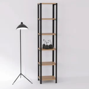 Wąski regał loft 40x35x190 cm posiadający laminowane półki w różnych kolorach (odcień można wybrać z dostępnej palety), łatwo dopasujesz do określonego stylu wnętrza oraz posiadanych mebli i elementów dekoracyjnych. Klasyczna budowa mebla sprawia, że można wykorzystać go do przechowywania różnych rzeczy, m.in. książek, ubrań, ozdobnych naczyń i dekoracyjnych przedmiotów czy nawet przetworów i narzędzi.