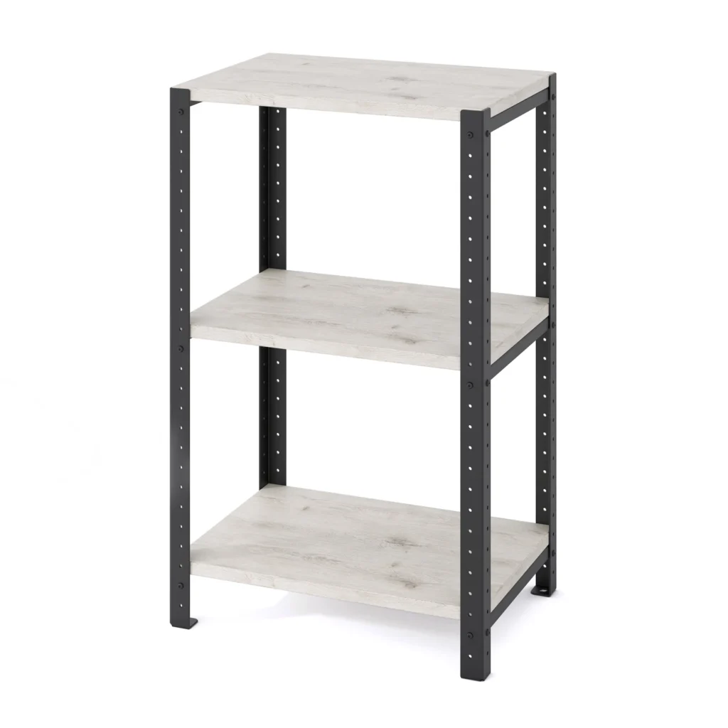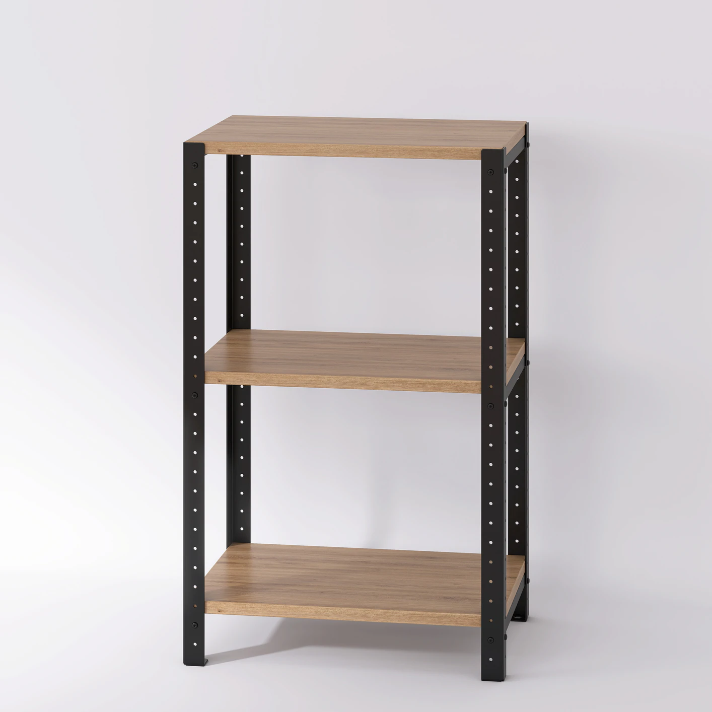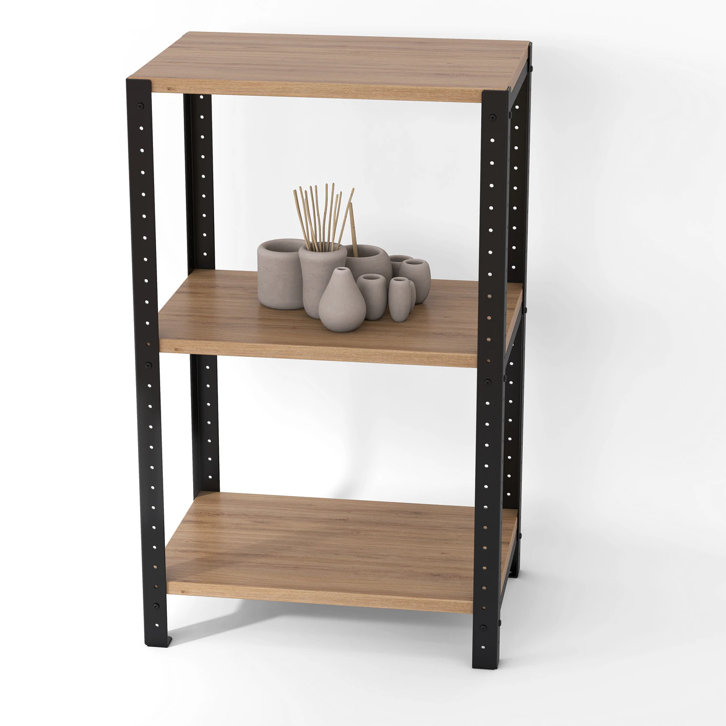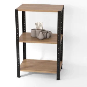 Regał posiada elegancką, minimalistyczną konstrukcję oraz laminowane półki imitujące naturalne drewno, które sprawiają, że jest to mebel uniwersalny. Dodatkowo półki są dostępne w różnych kolorach, dzięki czemu z łatwością dopasujesz regał do innych mebli oraz stylu konkretnego wnętrza. Ten mały i głęboki regał sprawdzi się jako nieduża szafka do salonu, ozdobna półka na łazienkowe akcesoria czy stolik nocny.