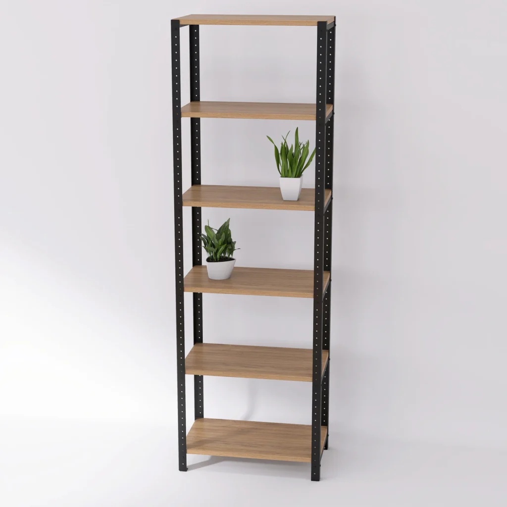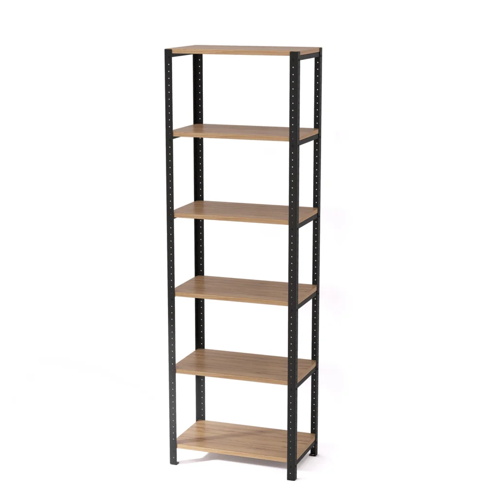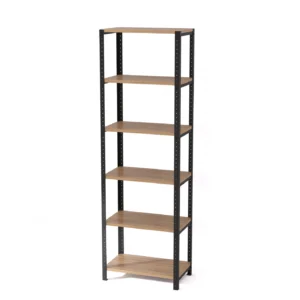 Regał posiada prostą stalową konstrukcję, która dzięki swojemu uniwersalnemu wyglądowi pasuje do każdego pomieszczenia i aranżacji, nie tylko utrzymanych w industrialnym stylu. Laminowane półki imitujące naturalne drewno są dostępne w różnych kolorach, dzięki czemu łatwo dopasować je do określonej przestrzeni i znajdujących się w niej mebli. Dostosowanie regału ułatwia też systemowa konstrukcja.