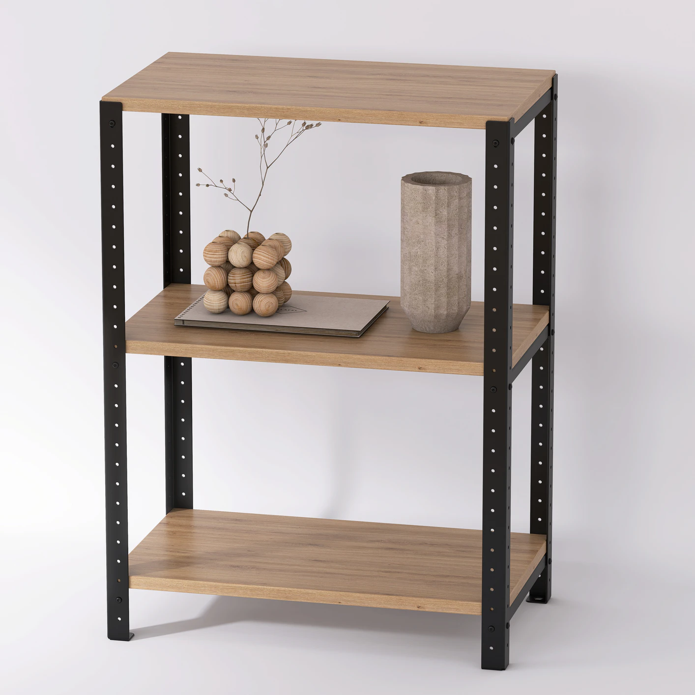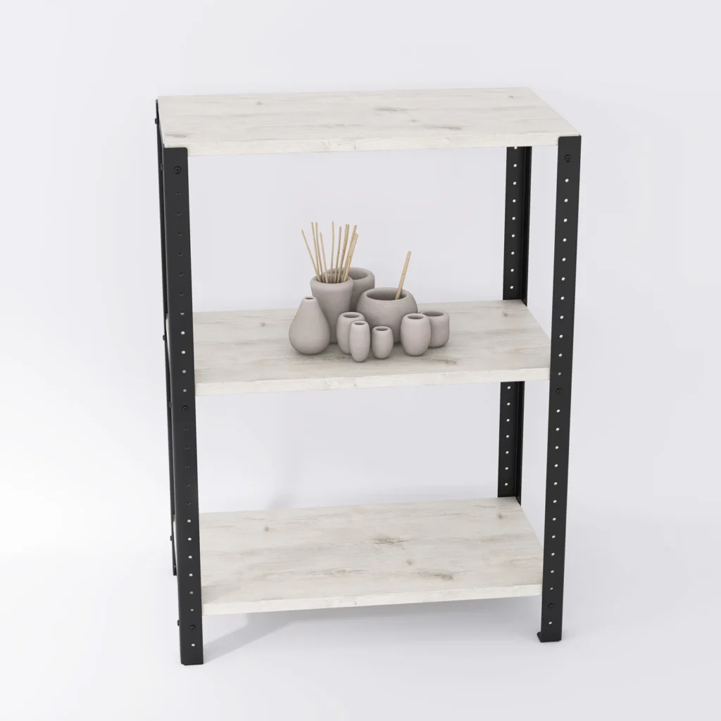 Dwa podstawowe komponenty, z których wykonany jest regał to stal i półki z laminowanych płyt wiórowych. Półki są odporne na ścieranie i uszkodzenia, ponieważ pokryte są niezwykle trwałą powłoką z termoutwardzalnej żywicy. Stal zabezpieczamy specjalną, nanoszoną proszkowo farbą ochronną. Regał nie wymaga regularnej konserwacji.