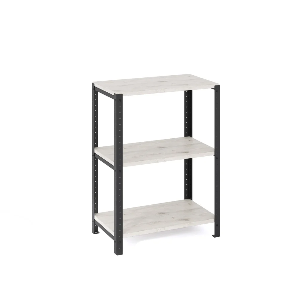 Niski regał loft 60x35x82 cm wykończony laminowanymi półkami imitującymi naturalne drewno oraz dostępnymi w szerokiej gamie kolorystycznej bez problemu dopasujesz do konkretnego stylu oraz posiadanych mebli. Prosta, klasyczna konstrukcja została wyposażona w specjalny system, dzięki któremu możesz łączyć ze sobą dowolne meble modułowe.
