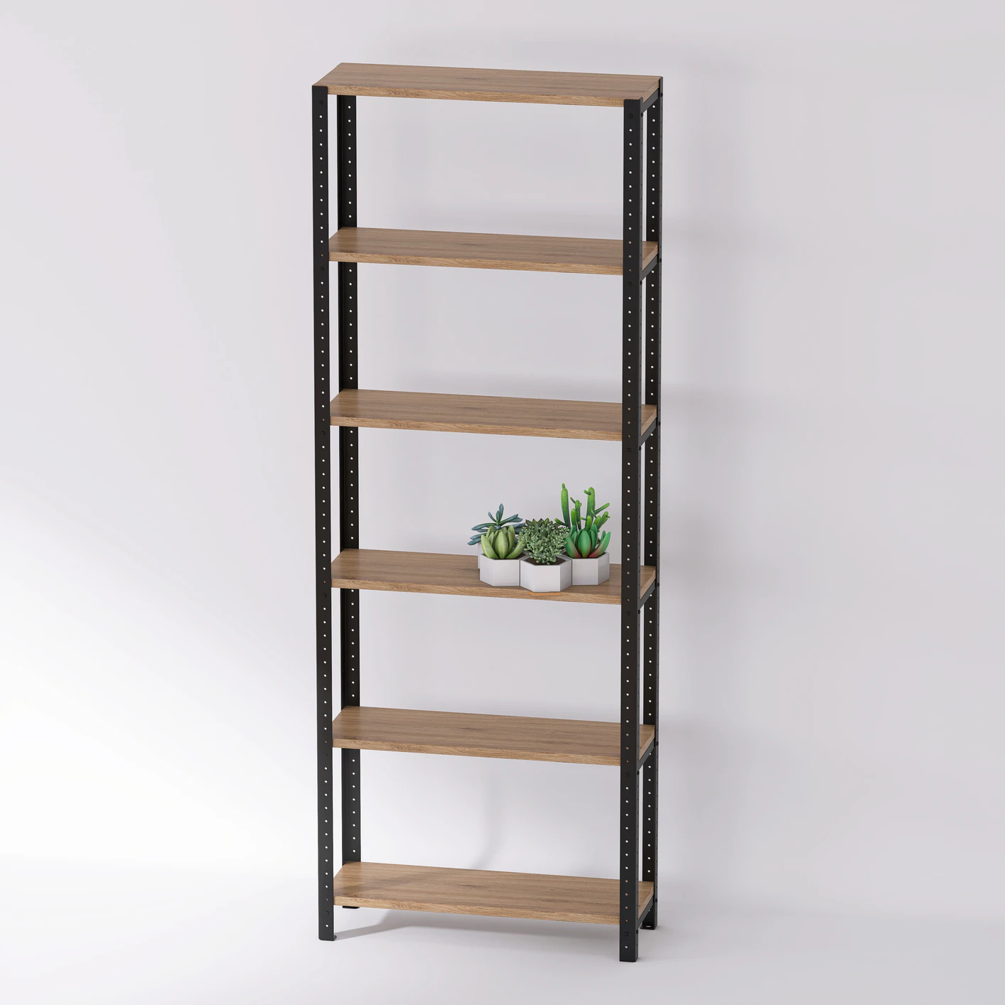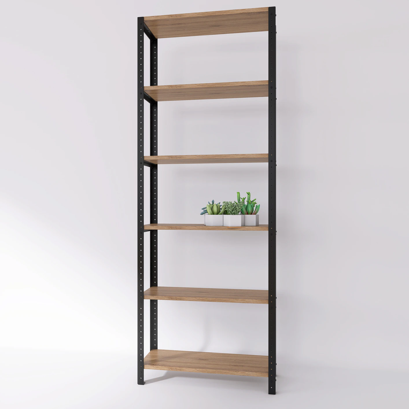 Wysoki regał loft 70x25x190 cm z laminowanymi półkami jest wysoki i dość szeroki, dlatego łatwo dopasować go do określonej przestrzeni i skutecznie wykorzystać jego funkcjonalność. To solidny mebel wykonany z wysokiej klasy komponentów, które są nie tylko wytrzymałe i odporne na zniszczenia, ale przede wszystkim sprawiają, że regał świetnie prezentuje się w każdym miejscu.