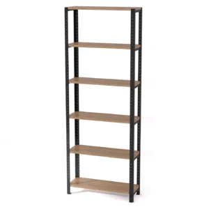 Wysoki regał loft 70x25x190 cm wykończony laminowanymi półkami, dostępnymi w wielu wariantach kolorystycznych, z łatwością dopasujesz do konkretnego pomieszczenia i posiadanej już kolekcji mebli. Jego uniwersalna konstrukcja wyposażona w system modułowy daje możliwość efektywnego zagospodarowania przestrzeni.