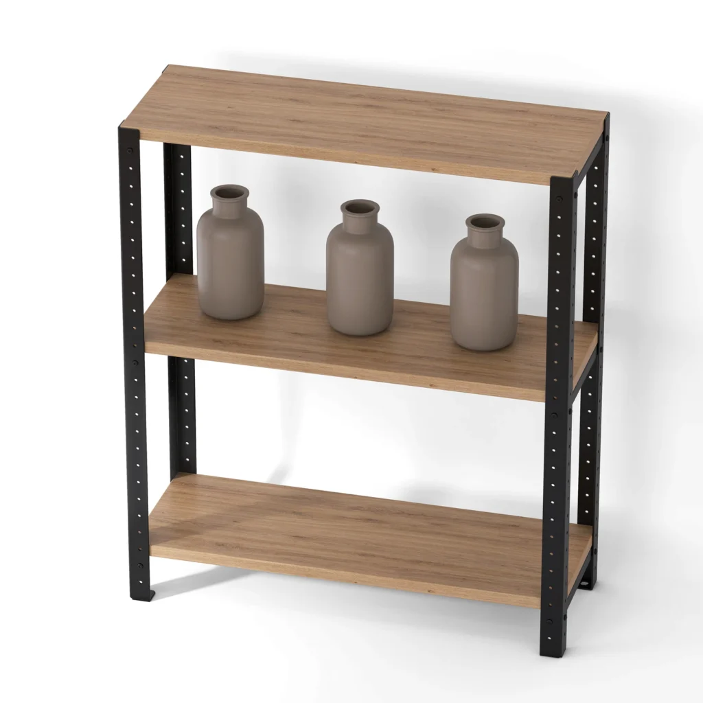 Regał loft 70x25x82 cm wykończony laminowanymi półkami daje wiele możliwości aranżacyjnych dzięki specjalnej systemowej konstrukcji. Łącząc ze sobą kilka różnych mebli o podobnej budowie, stworzysz meblościankę, która będzie odpowiadała Twoim potrzebom.
