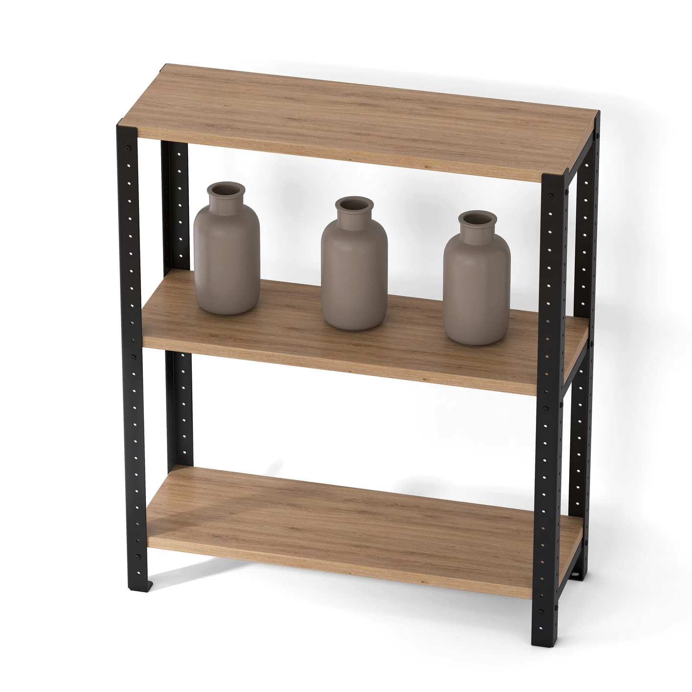 Półki z laminatu są dostępne w różnych wariantach kolorystycznych, dzięki czemu łatwo dostosujesz je do swoich potrzeb. Stalowa konstrukcja regału jest malowana proszkowo czarną farbą. Ten klasyczny zestaw pozwala dopasować regał loft do dowolnego pomieszczenia i stylu. Dodatkowo istnieje także możliwość złożenia zamówienia indywidualnego.