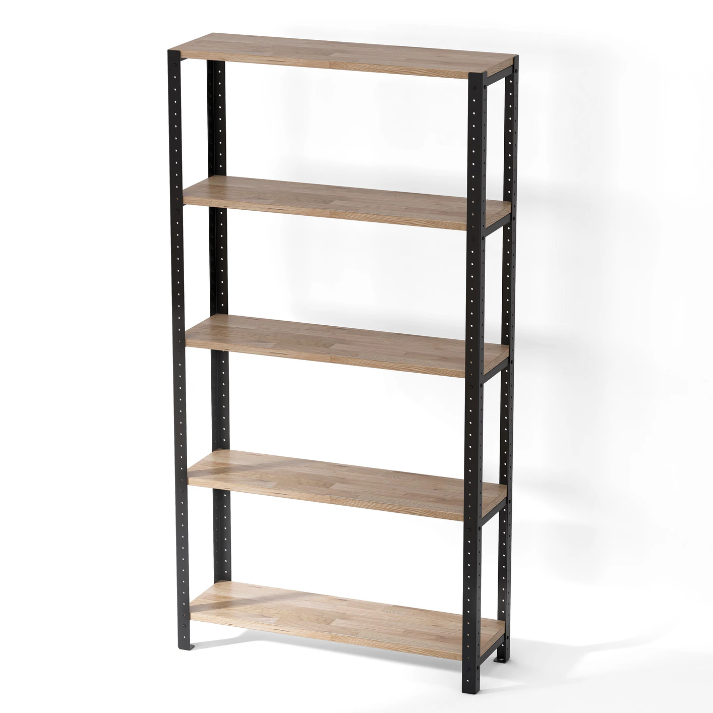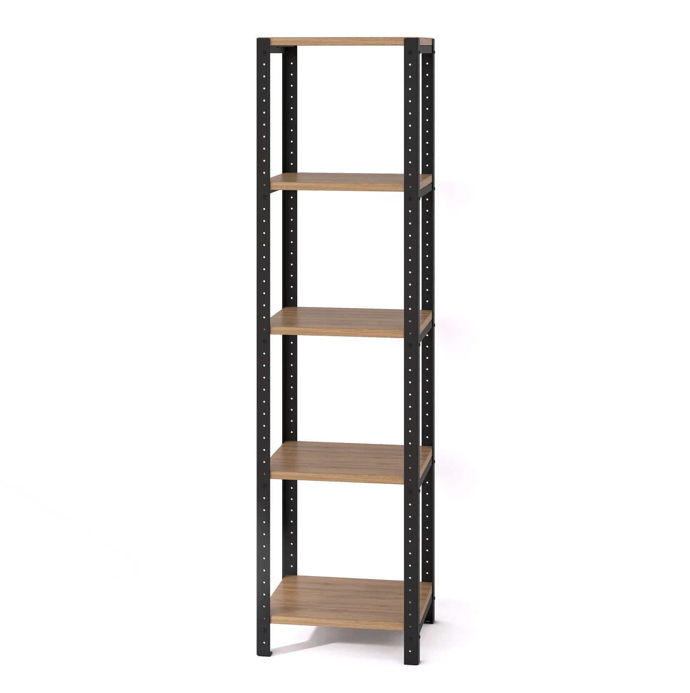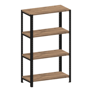 Regał jest zbudowany ze stalowej konstrukcji oraz półek z prasowanych płyt wiórowych pokrytych laminatem przypominającym naturalne drewno. Półki są też dostępne w różnych kolorach. Komponenty użyte do produkcji regału nabywamy w zaufanych polskich firmach, dzięki czemu mamy pewność, że są one najwyższej jakości.