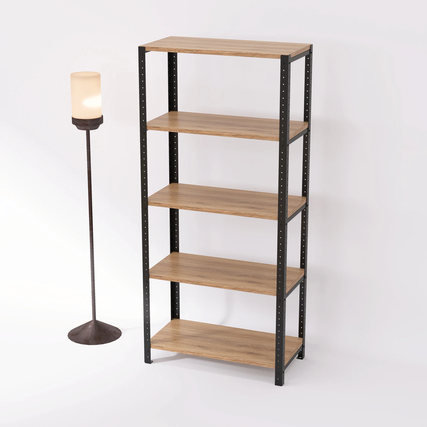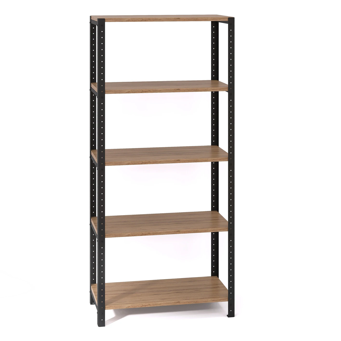 Regał loft 70x35x154 cm z laminowanymi półkami imitującymi drewno to idealny mebel dla osób, które chcą jak najlepiej dopasować go do posiadanego wnętrza i nie mają czasu na regularną pielęgnację, czego wymagają drewniane półki.
