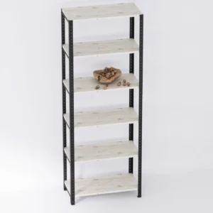 Wysoki regał loft 70x35x190 cm posiada laminowane półki wykonane z prasowanych płyt wiórowych pokrytych powłoką z termoutwardzalnej żywicy. Dzięki temu półki są trwałe oraz odporne na uszkodzenia. Nie wymagają także regularnej konserwacji, jak drewno. Do wykonania półek zostało użyte drewno z recyklingu. Stalową konstrukcję zabezpieczamy farbą chroniącą przed rdzą i odpryskiwaniem.