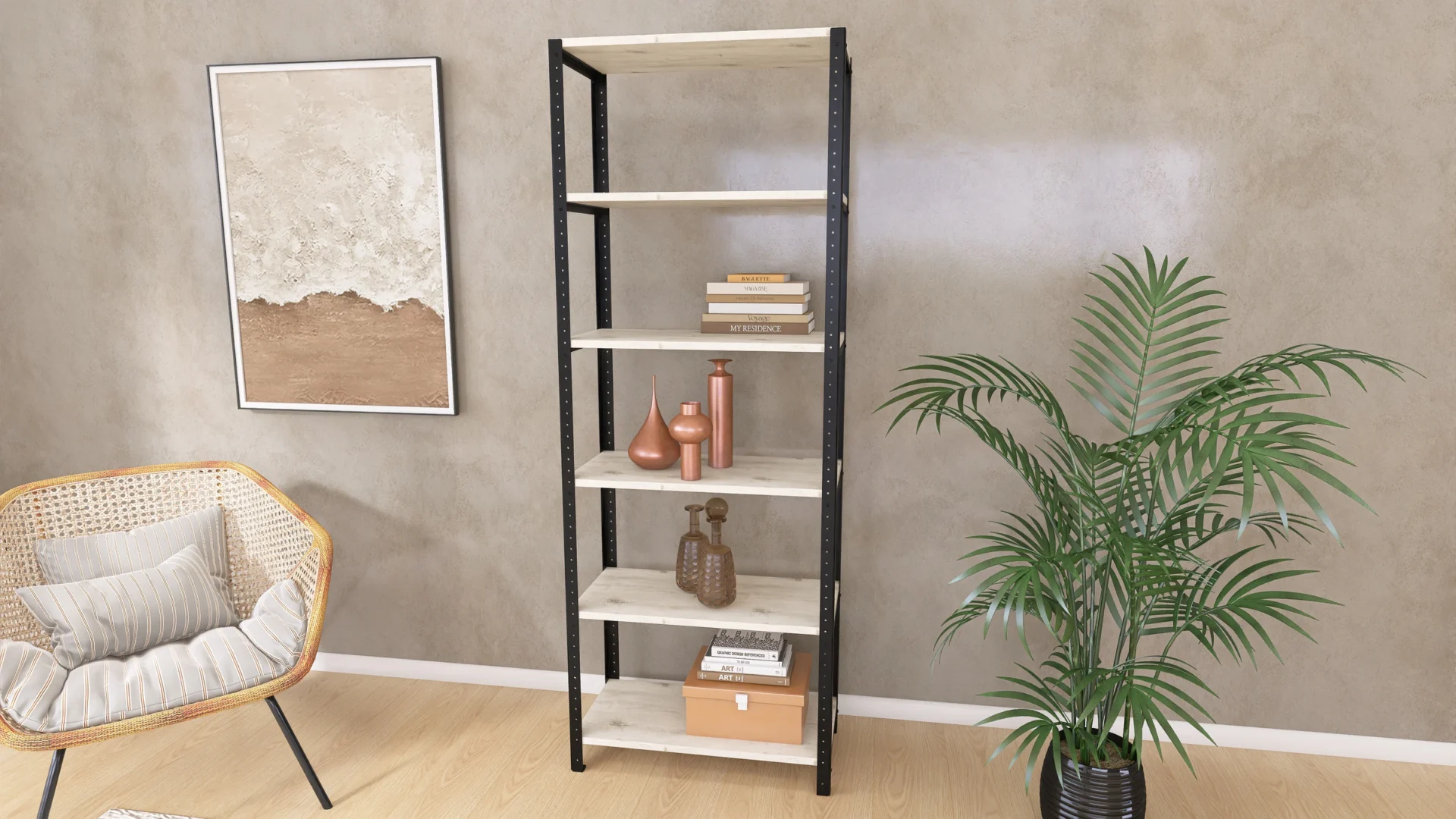 Dzięki prostej konstrukcji i półkom dostępnym w różnych kolorach, regał pasuje do wielu wnętrz i aranżacji. Sprawdzi się w salonie jako biblioteczka, kwietnik czy regał na ozdobne przedmioty. Może też pełnić funkcję szafki łazienkowej lub kuchennej na potrzebne akcesoria. W gabinecie lub biurze poustawiasz na nim segregatory z dokumentami czy nieduży sprzęt typu drukarka.