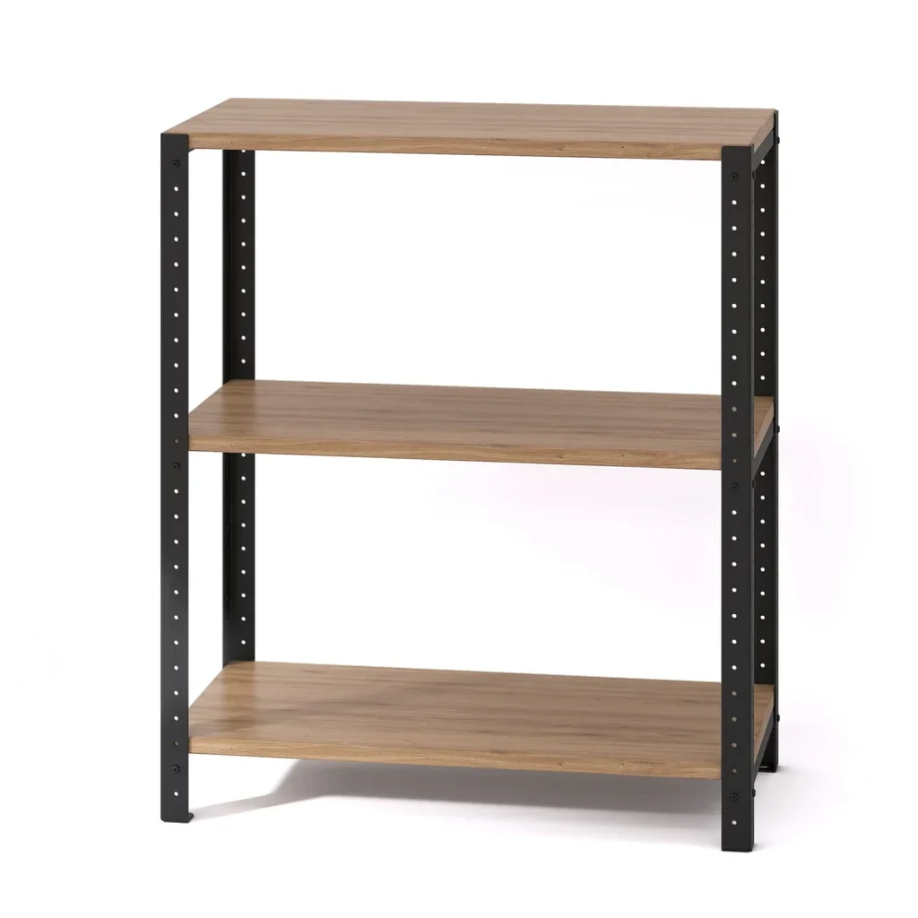 Regał loft 70x35x82 cm z laminowanymi półkami w wielu wersjach kolorystycznych z łatwością dopasujesz do stylu wnętrza oraz innych mebli. Regał sprawdzi się jako średniej wielkości biblioteczka, regał biurowy na segregatory i nieduży sprzęt RTV, szafka na buty do przedpokoju lub podręczny mebel do łazienki lub kuchni, na którym możesz trzymać potrzebne akcesoria.