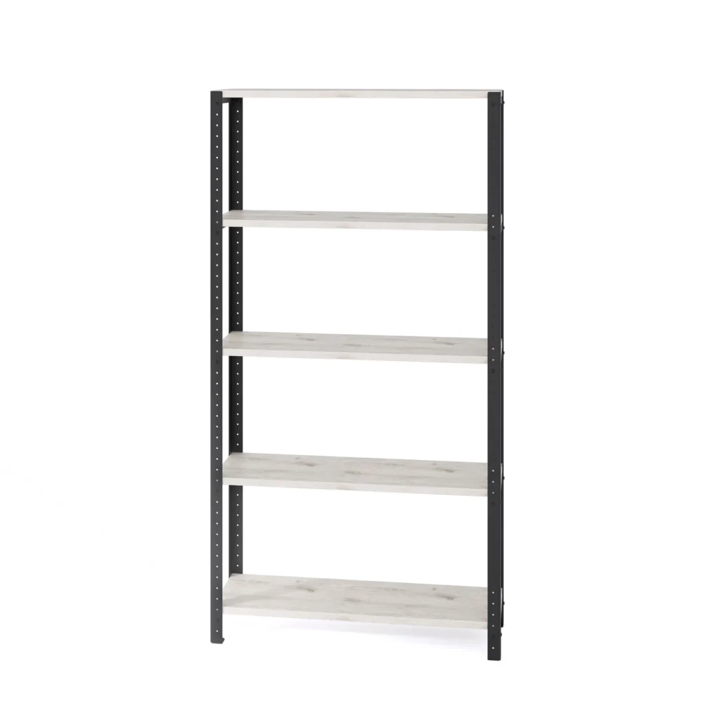 Szeroki regał loft 80x25x154 cm z laminowanymi półkami to stylowy i pojemny mebel, który pomieści wiele potrzebnych rzeczy. Łącząc go z innymi regałami, biurkami i stolikami modułowymi, stworzysz ciekawą zabudowę do jadalni, salonu czy sypialni.