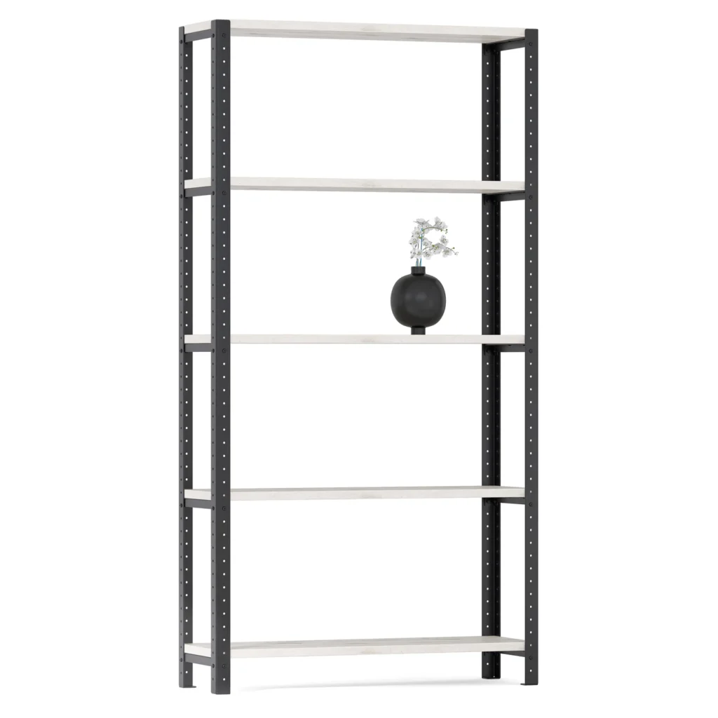Regał składa się z dwóch komponentów – stali i półek wykonanych z laminowanych płyt wiórowych. Jakość materiałów gwarantują polscy producenci. Wszystkie komponenty są odpowiednio zabezpieczone i nie wymagają dodatkowych zabiegów pielęgnacyjnych i regularnej konserwacji.