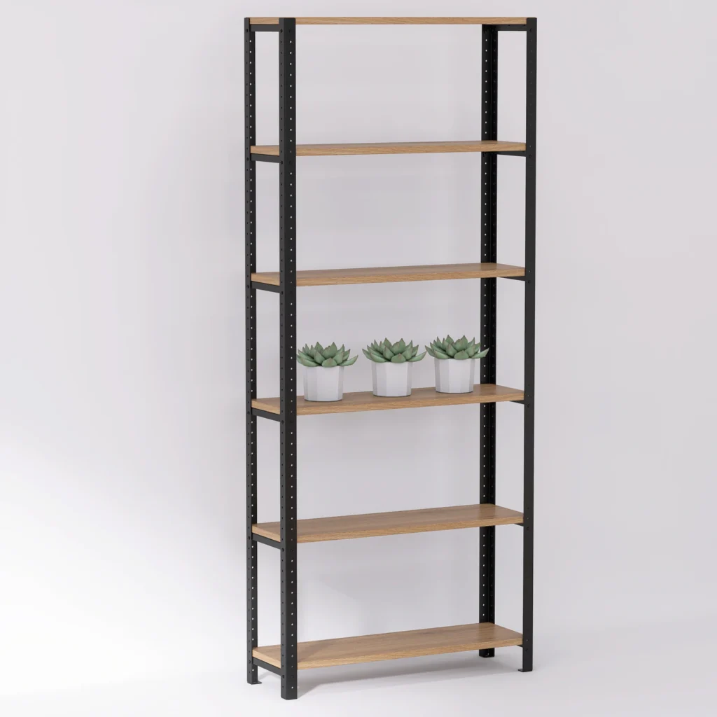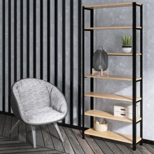 Wysoki regał loft 80x25x190 cm z laminowanymi półkami sprawdzi się nie tylko jako domowa biblioteczka czy szafka biurowa. Posiada systemową konstrukcję, która pozwala na łączenie go z innymi meblami i tworzenie z nich oryginalnych meblościanek. To także elegancki i ponadczasowy mebel.