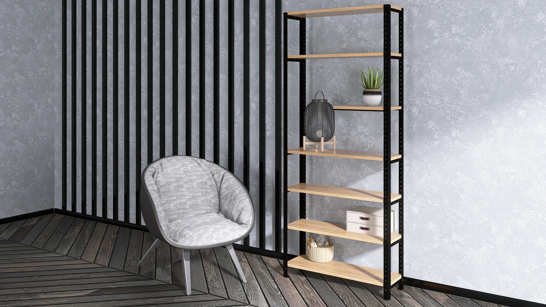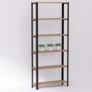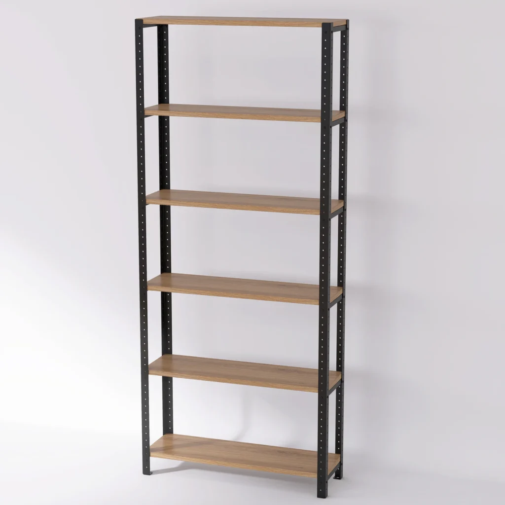 Komponenty potrzebne do stworzenia regału nabywamy u polskich producentów, do których mamy zaufanie. Wiemy, że otrzymujemy od nich materiały wysokiej klasy, dzięki którym nasze meble są solidne i eleganckie. Laminowane półki są wykonane z utwardzanych płyt wiórowych pokrytych termoutwardzalną żywicą, a stal zabezpieczona specjalną farbą chroniącą przed korozją i uszkodzeniami.