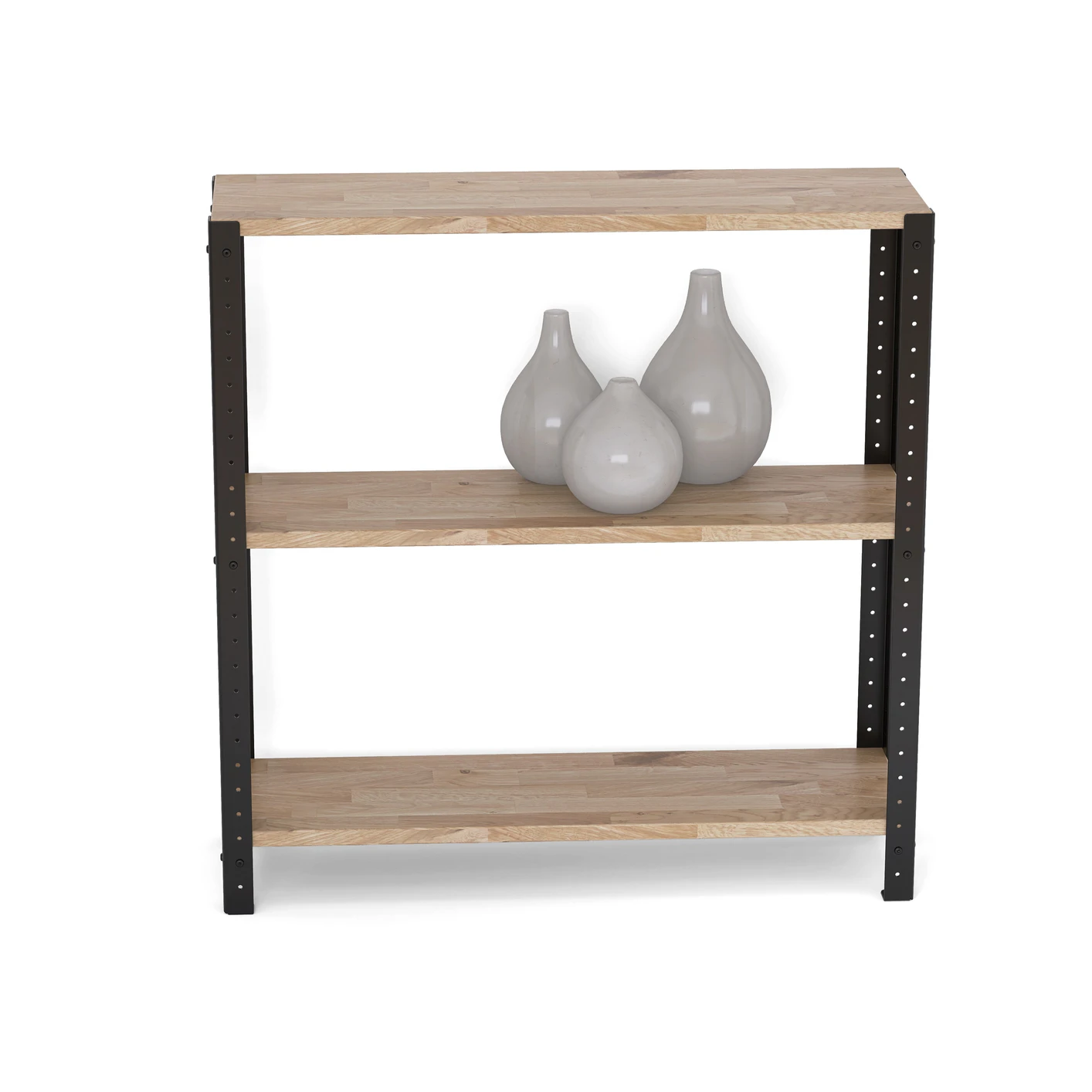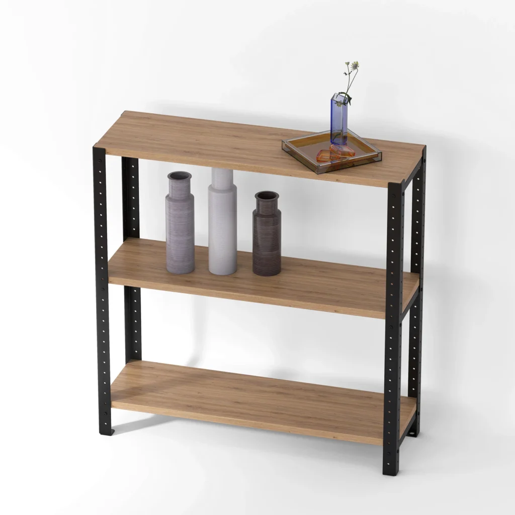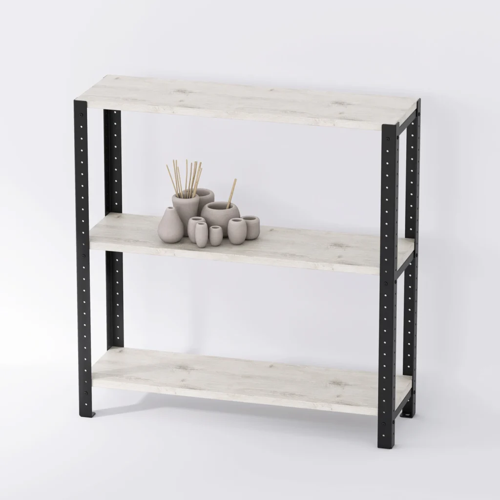 Szeroki regał loft 80x25x82 cm wykończony laminowanymi półkami to także dość niski mebel, który ma wiele zastosowań i pasuje do różnych aranżacji, nie tylko w stylu loftowym. Systemowa konstrukcja oraz możliwość doboru określonego koloru półek pozwolą Ci dopasować go do konkretnego wnętrza.
