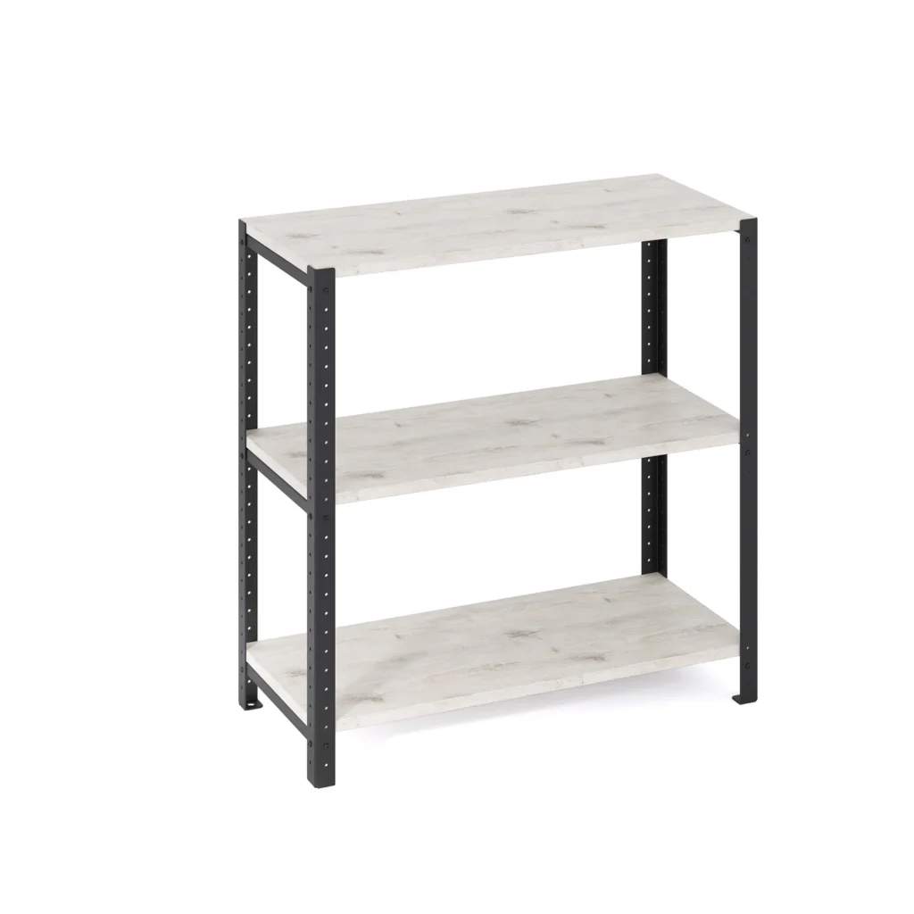 Szeroki regał loft 80x35x82 cm z laminowanymi półkami to mebel uniwersalny, który możesz dostosować do własnych oczekiwań. Półki posiadają powłokę imitującą drewno i są dostępne w różnych kolorach, co pozwala na dopasowanie ich wyglądu do ocieni wnętrza oraz kolorystki mebli.