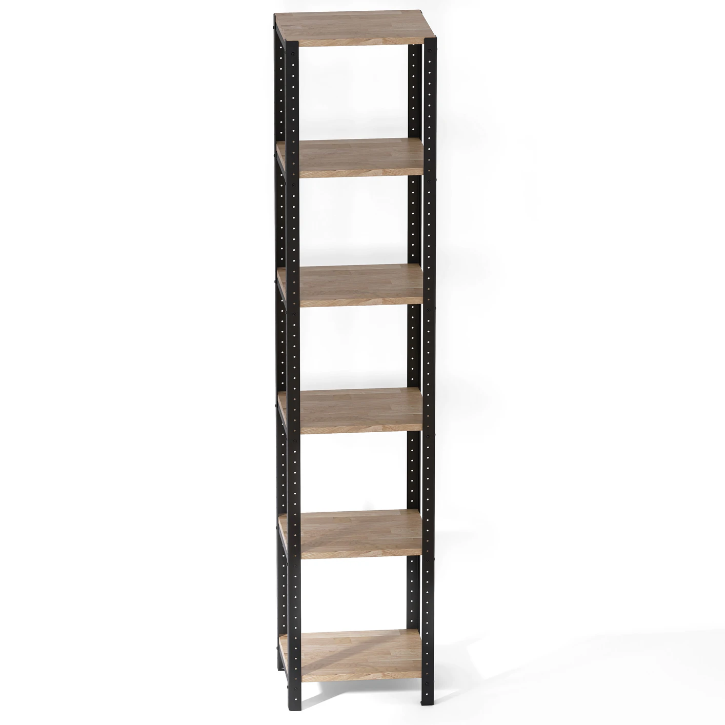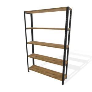 Szeroki regał loft 100x25x154 cm z dębowymi półkami to mebel o uniwersalnym zastosowaniu. Dobrze sprawdzi się jako szafka do salonu, na której można wyeksponować stylowe dodatki, praktyczna szafka biurowa czy nieduża biblioteczka. Może również pełnić niestandardowe funkcje, np. jako kwietnik – zarówno w pomieszczeniu, jak i na zewnątrz (wówczas wymaga dodatkowego zabezpieczenia, które wykonujemy na zamówienie).