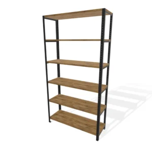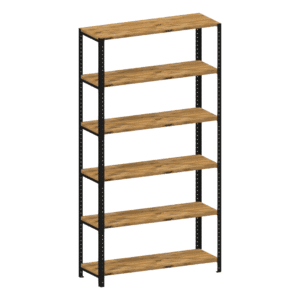 Wysoki regał loft 100x35x190 cm z dębowymi półkami i solidną stalową konstrukcją jest dość duży i wytrzymały, dlatego najlepiej sprawdzi się do przechowywania cięższych rzeczy. Może służyć jako regał na książki czy szafka na przetwory do spiżarni. Pomoże Ci również utrzymać porządek w garażu lub pomieszczeniu gospodarczym. Po dodatkowym zabezpieczeniu, które wykonujemy na życzenie klienta, można używać go też na dworze.