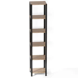 Wąski regał loft 40x35x190 cm z dość głębokimi dębowymi półkami to przede wszystkim wąski i wysoki mebel, który pozwala na przechowanie wielu rzeczy w niedużej przestrzeni. Idealnie sprawdzi się jako półka na książki, regał do przedpokoju czy szafka biurowa. Może też pełnić funkcję regału na ozdobne rośliny i kwiaty, nie tylko w domu – po odpowiednim zabezpieczeniu można go używać na zewnątrz.