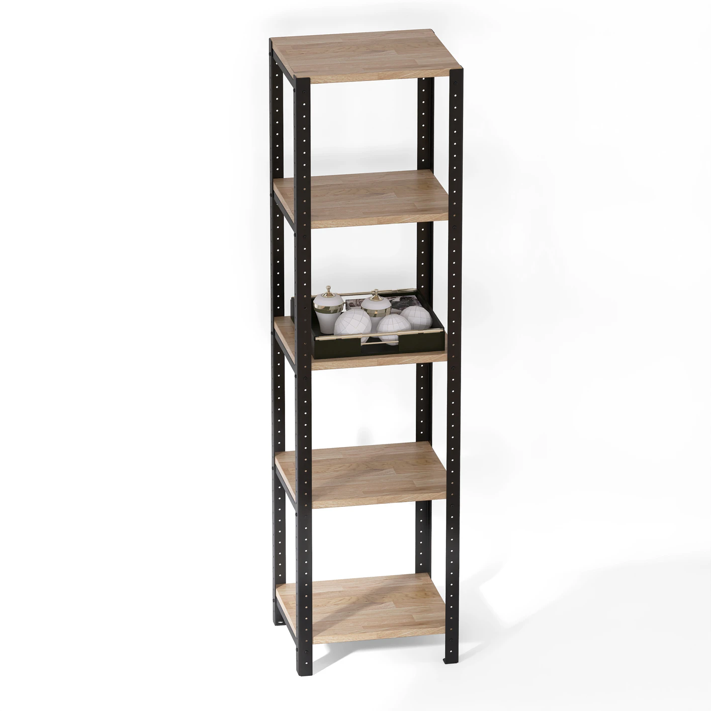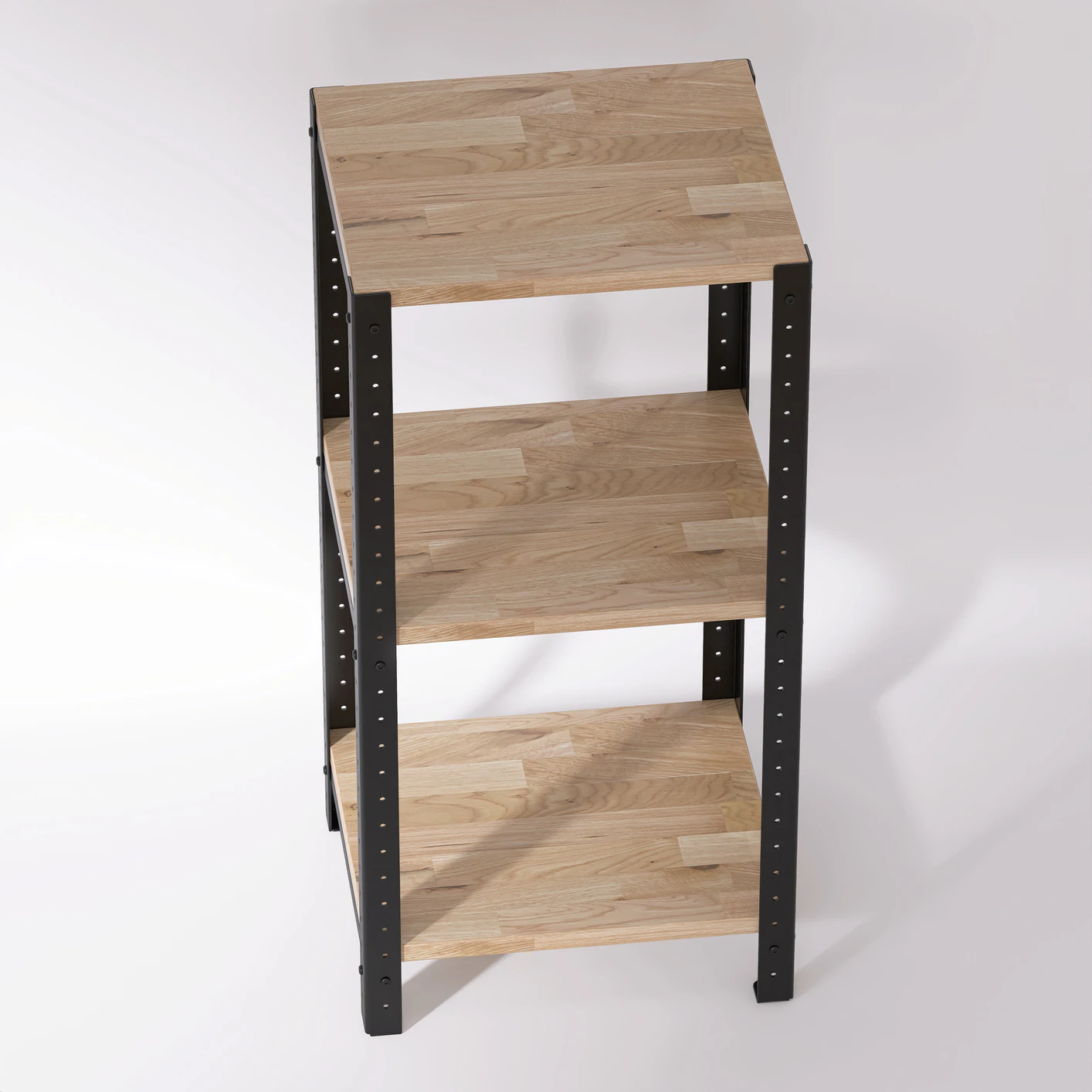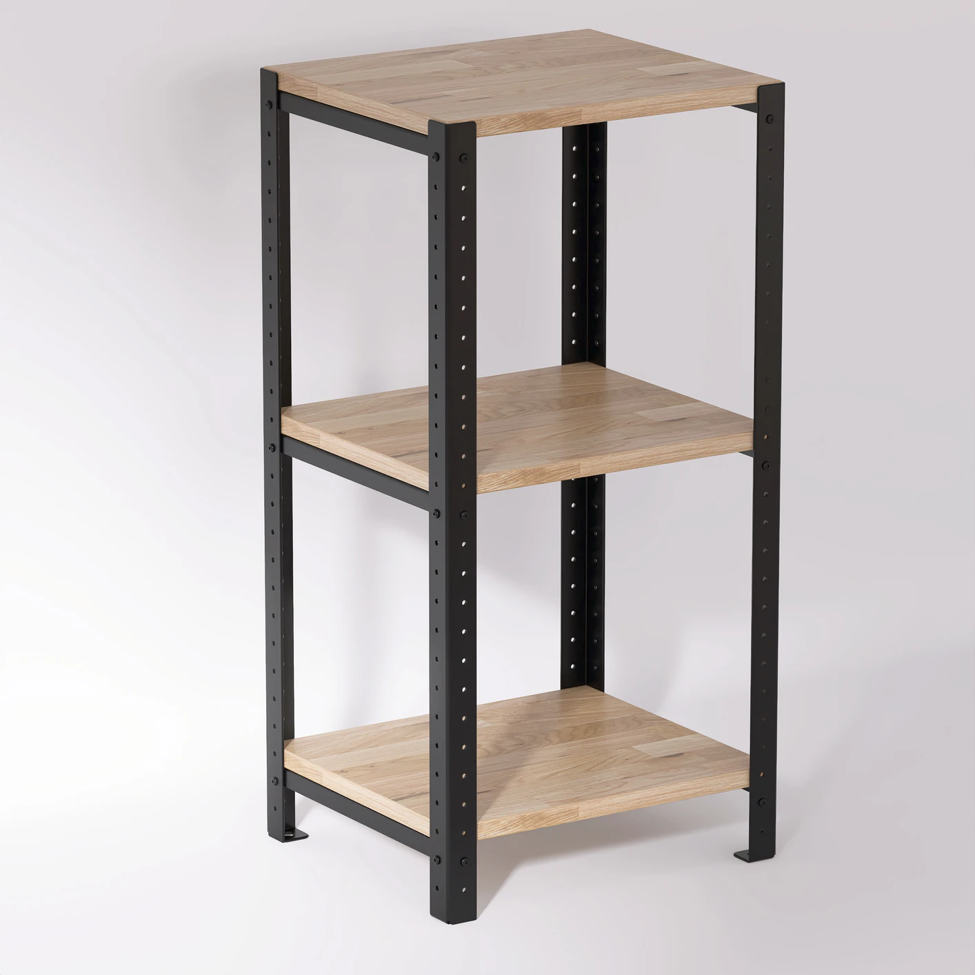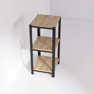 Niski i wąski regał loft 40x35x82 cm z dębowymi półkami wyróżnia się przede wszystkim jakością materiałów użytych do jego produkcji. Regał składa się z dwóch komponentów – stalowej konstrukcji i drewnianych półek, które dostarczają nam zaufani polscy producenci. Stal pochodzi ze śląskich hut, a drewno z północnej części Polski. Materiały te są ekologiczne i nadają się do recyklingu.