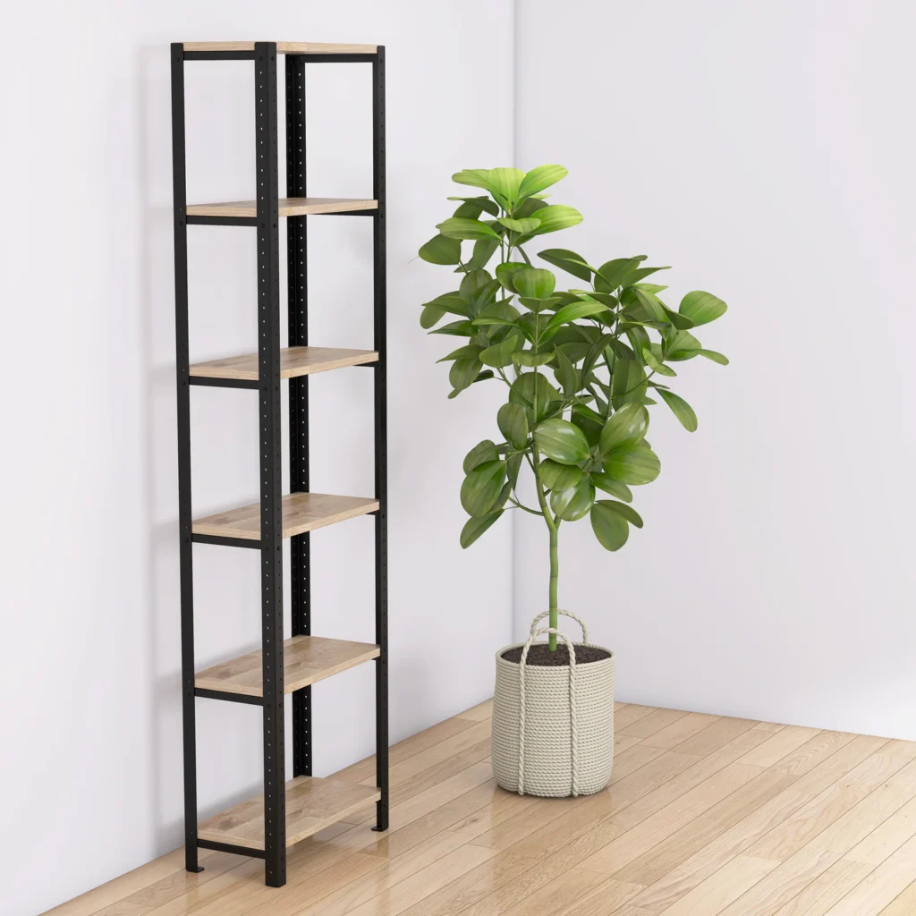 Regał loft wąski 50x25x190 cm z dębowymi półkami to elegancki i ponadczasowy mebel, który jest także wytrzymały i funkcjonalny. Przechowasz na nim nie tylko książki i dekoracyjne dodatki, ale może też pełnić funkcję szafki biurowej, kwietnika czy regału łazienkowego lub ogrodowego.