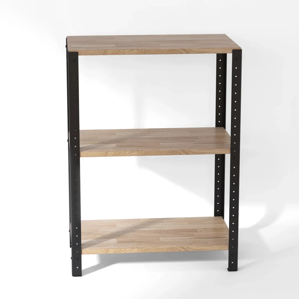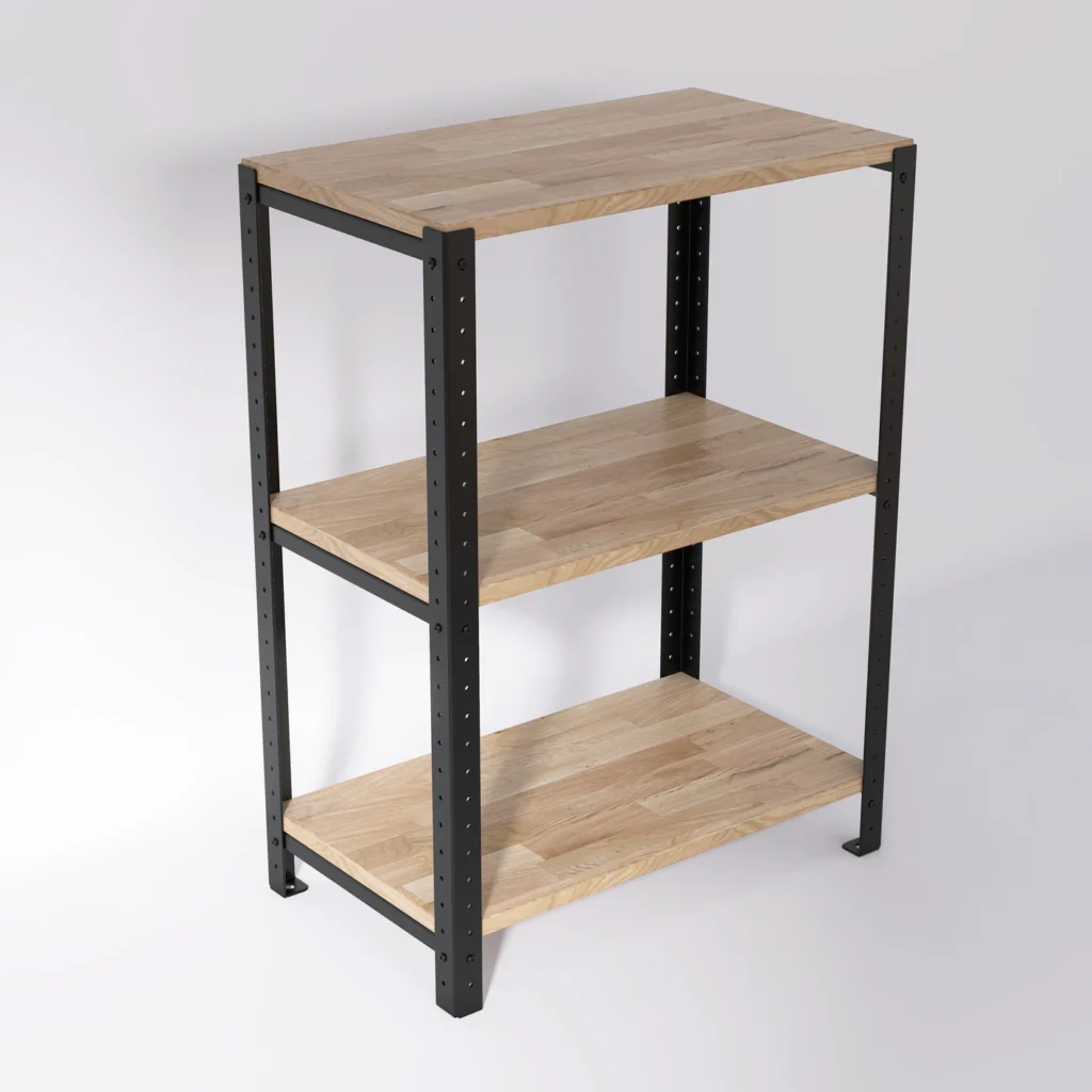 Niski regał loft 60x35x82 cm z dębowymi półkami to stosunkowo mały mebel, który można wykorzystać w wielu aranżacjach. Jego minimalistyczny wygląd sprawia, że pasuje do różnego typu pomieszczeń i stylów, a ze względu na gabaryty może także pełnić różne funkcje, np. szafki nocnej lub regału na buty.