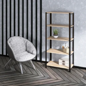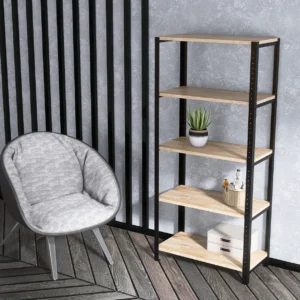 Regał loft 70x35x154 cm wykończony stylowymi dębowymi półkami nie tylko doskonale prezentuje się w industrialnych aranżacjach, ale sprawdzi się też w mniejszych, kameralnych wnętrzach. To wytrzymały mebel, na którym poustawiasz zarówno bardziej dekoracyjne przedmioty, jak i cięższe rzeczy typu kolekcja książek, dokumenty czy nieduży sprzęt RTV. Po dodatkowym zabezpieczeniu regał może być również używany na zewnątrz.