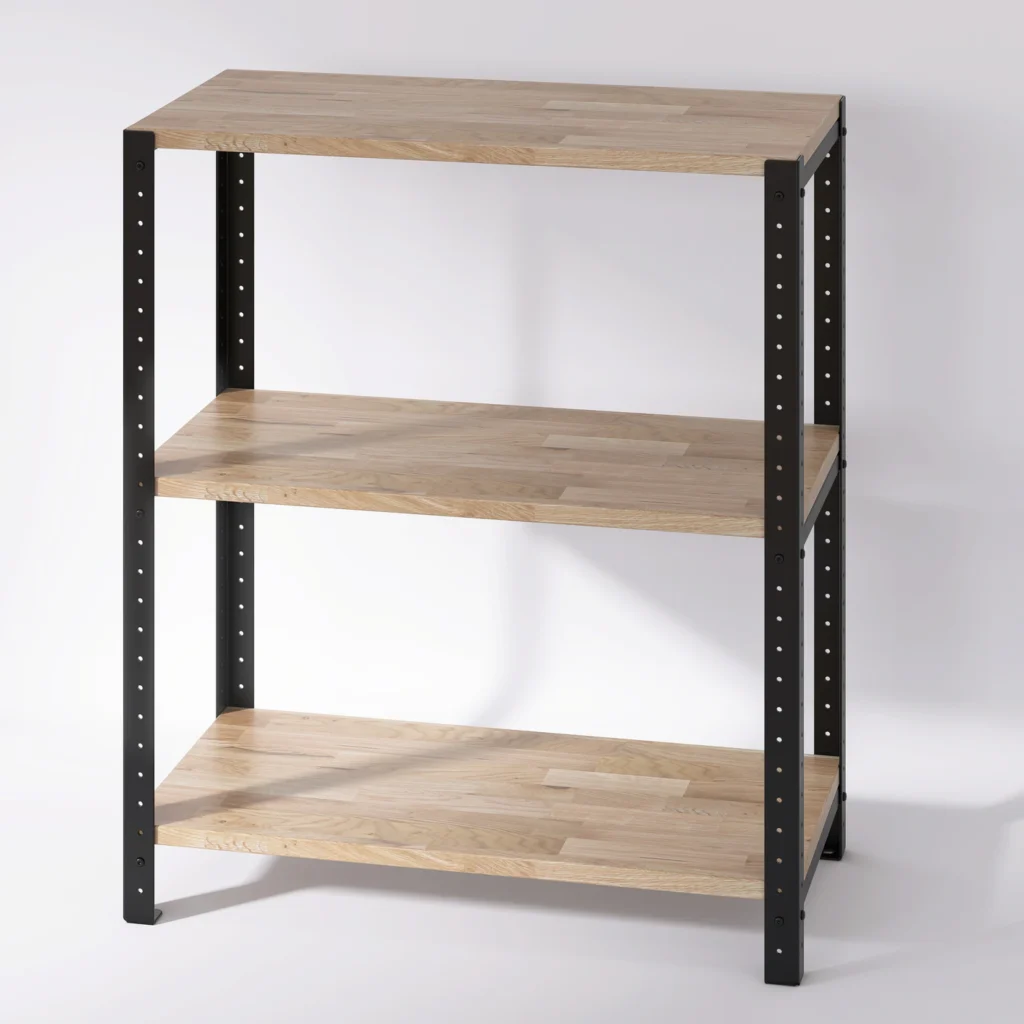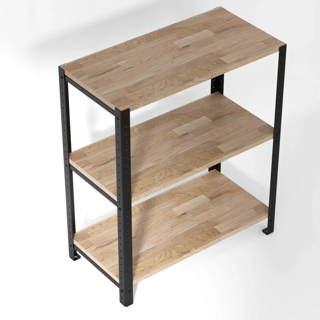 Regał loft 70x35x82 cm z dębowymi półkami to średniej wielkości mebel, który może pełnić funkcję m.in. większej szafki nocnej, niedużej biblioteczki czy kwietnika. Po połączeniu go z innymi meblami z serii modułowej, dzięki systemowej konstrukcji, utworzysz szytą na miarę meblościankę.