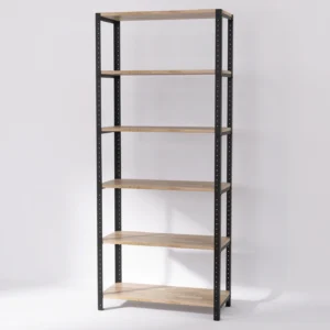 Wysoki regał loft 80x35x190 cm z dębowymi półkami posiada też prostą stalową konstrukcję w loftowym stylu, która pasuje do każdego wnętrza. Drewno i stal tworzą razem efektowny i elegancki mebel. Wymiary regału pozwalają na wykorzystanie go na różne sposoby – może pełnić funkcję biblioteczki, kwietnika czy szafki biurowej, a nawet łazienkowej czy ogrodowej. Mebel jest dobrze zabezpieczony przed uszkodzeniami.