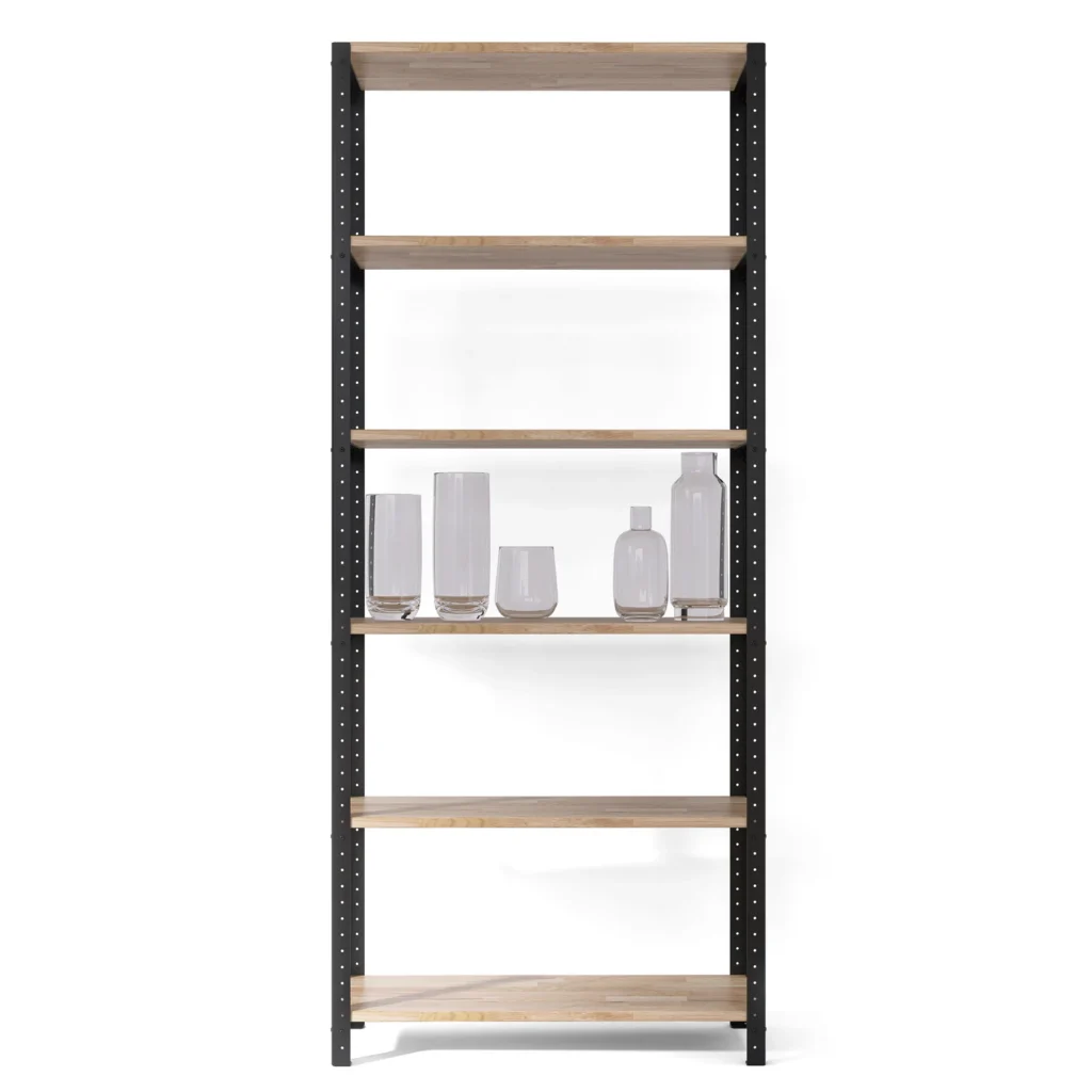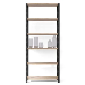Wysoki regał loft 80x35x190 cm z dębowymi półkami to uniwersalny mebel z systemową konstrukcją, dzięki której samodzielnie stworzysz zabudowę do dowolnego pomieszczenia. Jest także wykonany z ekologicznych materiałów od polskich producentów.