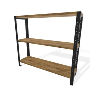 Regał loft 90x25x82 cm z dębowymi półkami to szeroki mebel, który idealnie sprawdzi się jako szafka pod telewizor czy na wieżę stereo, a także siedzisko do przedpokoju z możliwością przechowywania butów. Dzięki solidnej konstrukcji i drewnianym półkom na regale można trzymać cięższe przedmioty.