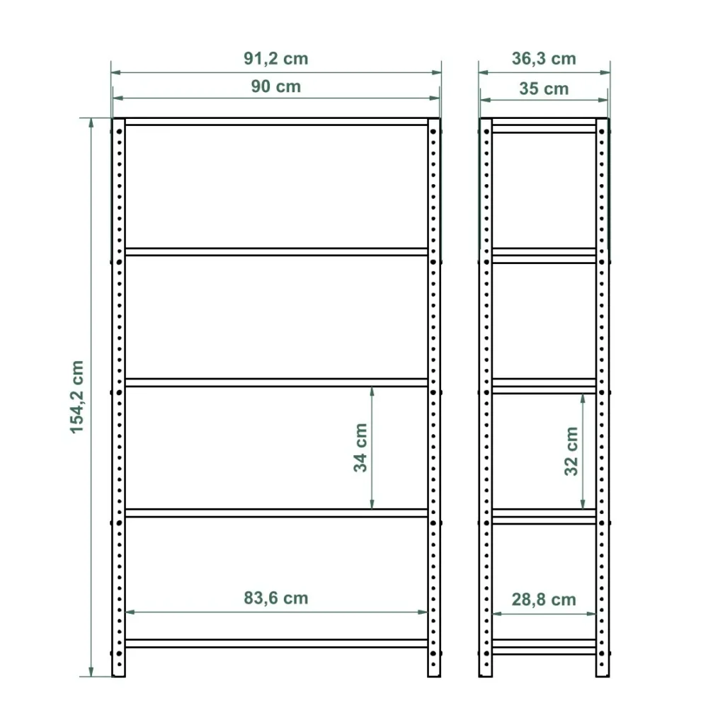 Szeroki regał loft 90x35x154 cm wykończony dębowymi półkami posiada elegancką stalową konstrukcję z systemem umożliwiającym łączenie go z innymi meblami. Dzięki uniwersalnej budowie regał pasuje do różnych przestrzeni i stylów. Może pełnić funkcję pojemnej szafy do sypialni, przedpokoju lub salonu, a także regału łazienkowego czy kuchennego. Mebel sprawdzi się również w roli kwietnika lub szafki na ogrodowe akcesoria.