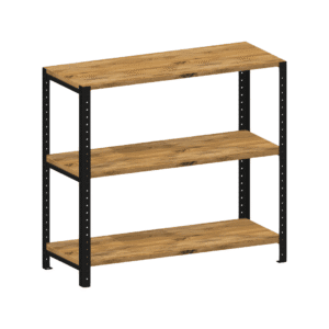 Szeroki regał loft 90x35x82 cm wykończony dębowymi półkami i posiadający klasyczną stalową konstrukcję to mebel ponadczasowy. Dopasujesz go do każdej aranżacji i wnętrza, ale ze względu na swoje rozmiary najlepiej sprawdzi się jako szafka pod telewizor czy wieżę stereo, średniej wielkości regał biurowy na dokumenty i drukarkę lub pojemną i elegancką szafkę do przedpokoju. Może także pełnić funkcję stolika nocnego czy niedużej biblioteczki.
