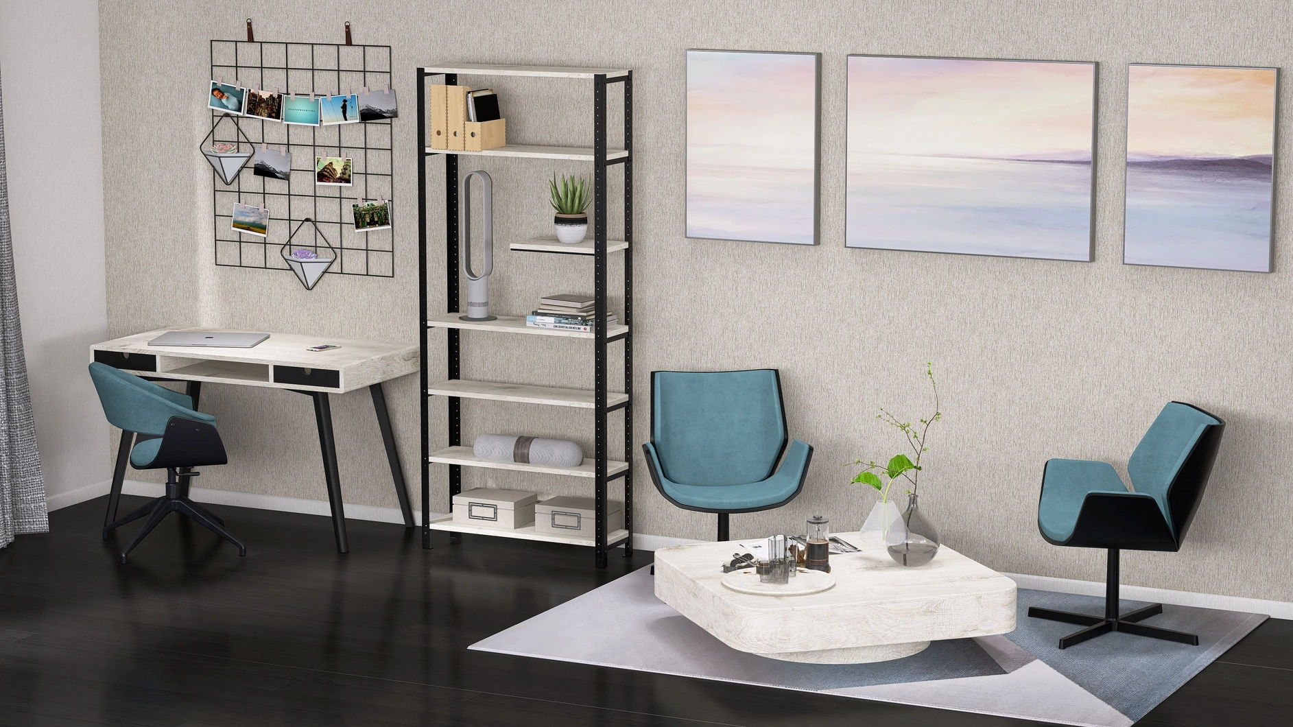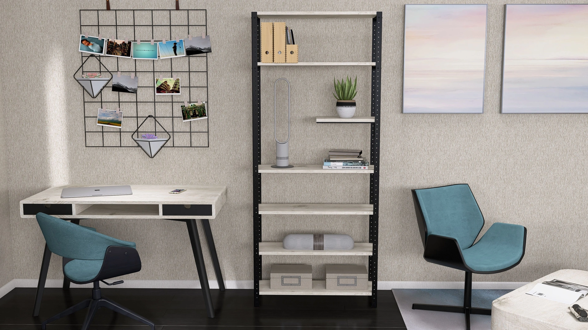 Połącz biurko z regałem i stwórz optymalną przestrzeń do pracy. Systemowa konstrukcja pozwala na konfigurowanie funkcjonalnych zestawów mebli.