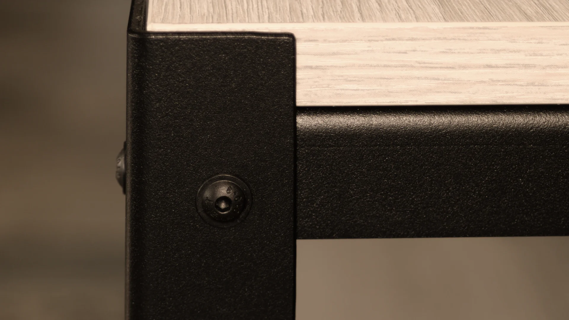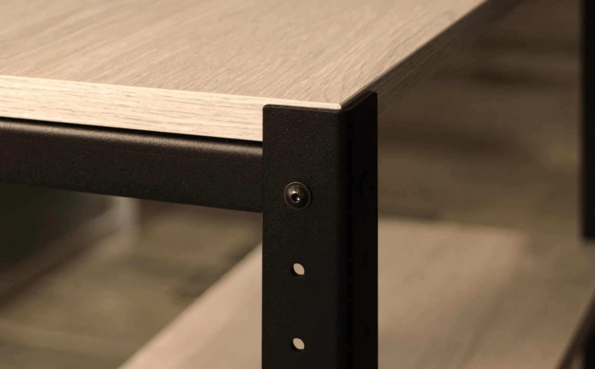 Ciepły, klasyczny dekor o naturalnym rysunku drewna – świetnie współgra z czarną stalową konstrukcją, dodając wnętrzu przytulności i elegancji.