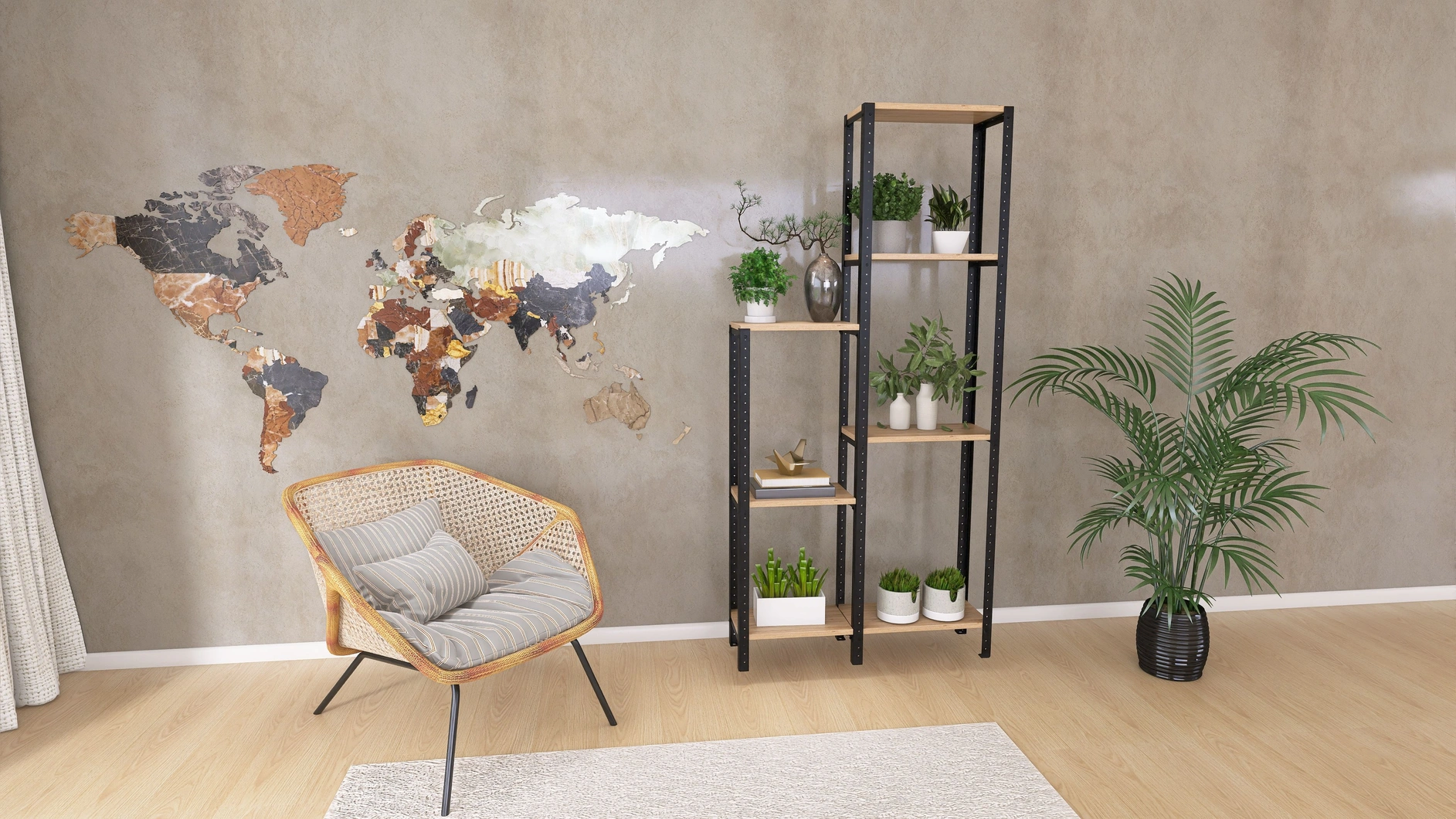 Idealny do salonu, sypialni, biura, kuchni czy przedpokoju. Świetnie sprawdzi się jako regał loft na kwiaty, do roślin w donicach, jak i ekspozytor na dekoracje.
