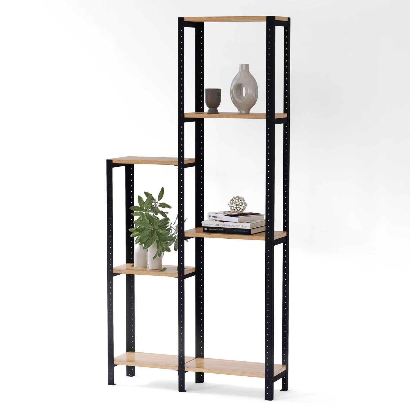 Regał można rozbudowywać o dodatkowe półki lub segmenty – z łatwością dopasujesz go do zmieniających się potrzeb.